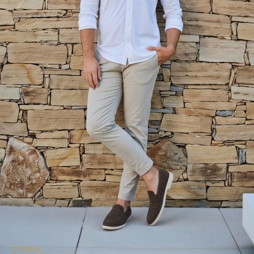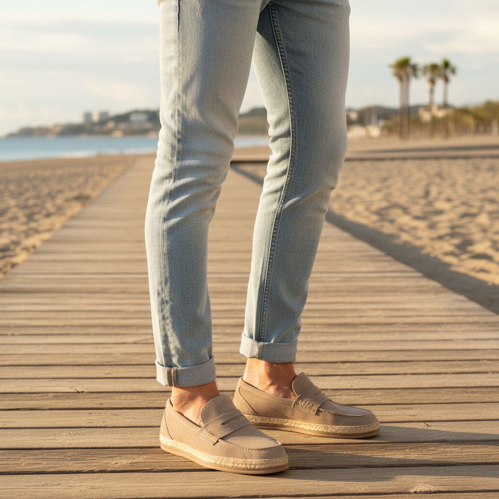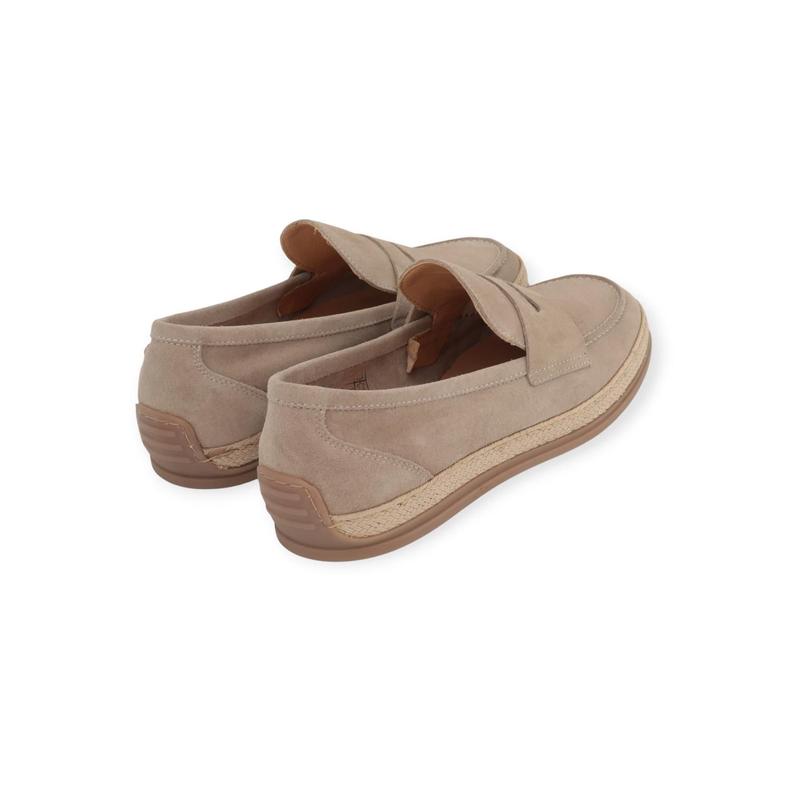 Mocassin Steff van CTWLK - Catwalk voor heren. Deze comfortabele mocassin is in zand suède. Heeft bovenaan een band over de wreef. Afgewerkt met een ‘espadrille look’ touwzool boven de rubberen zool die de schoen een zomerse uitstraling geeft. De rubberen zool loopt door tot op de hiel.