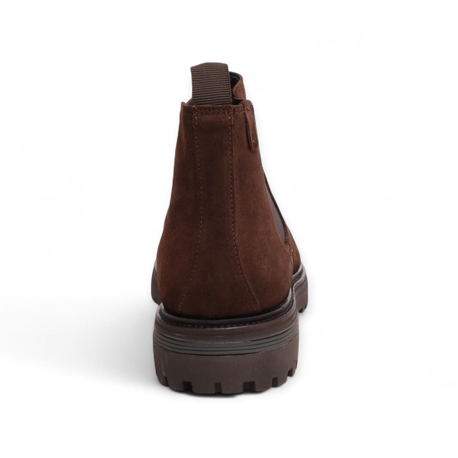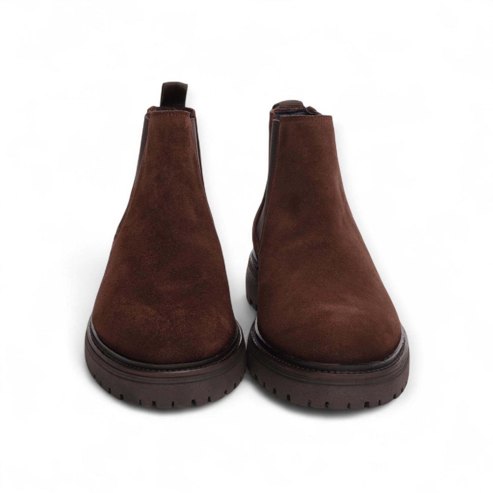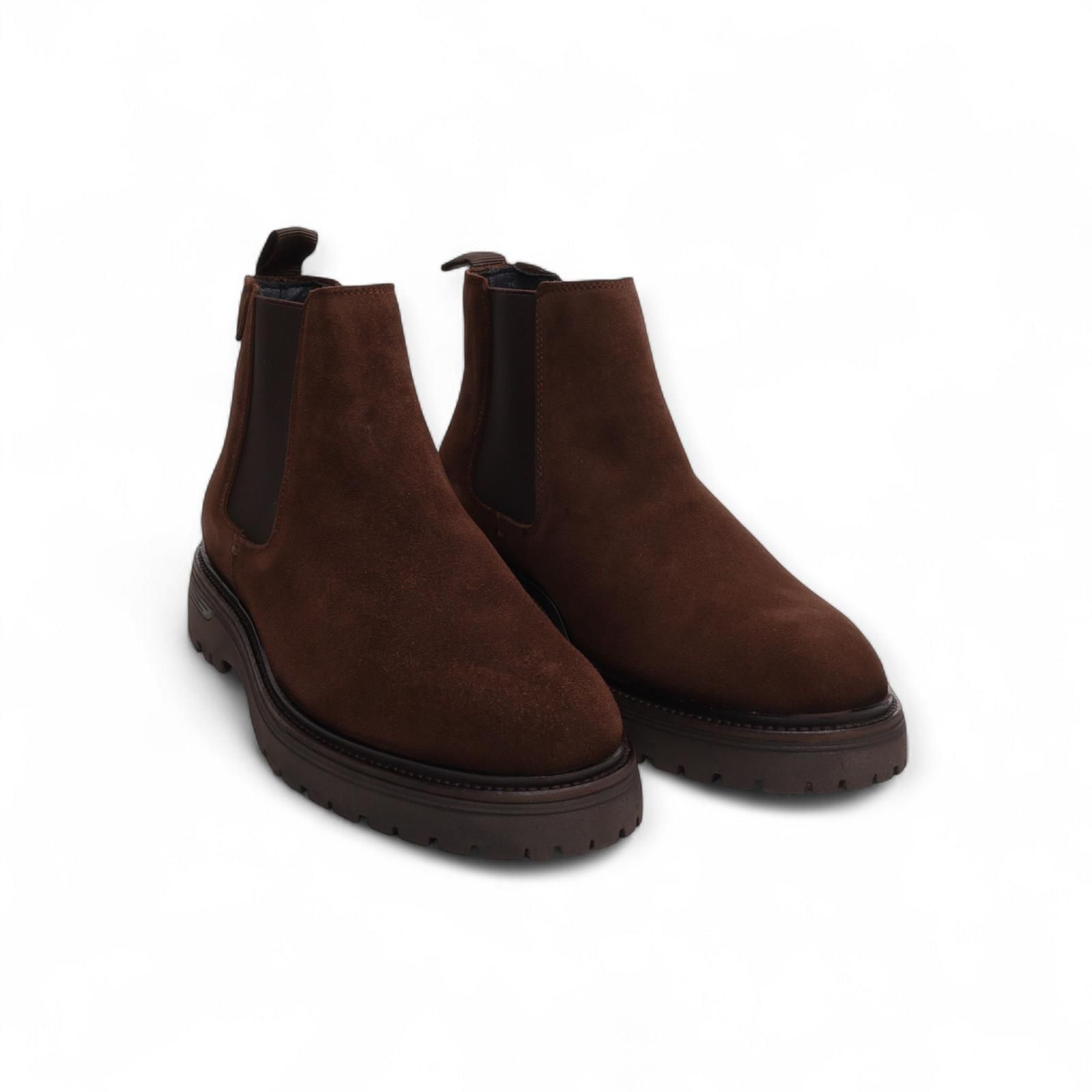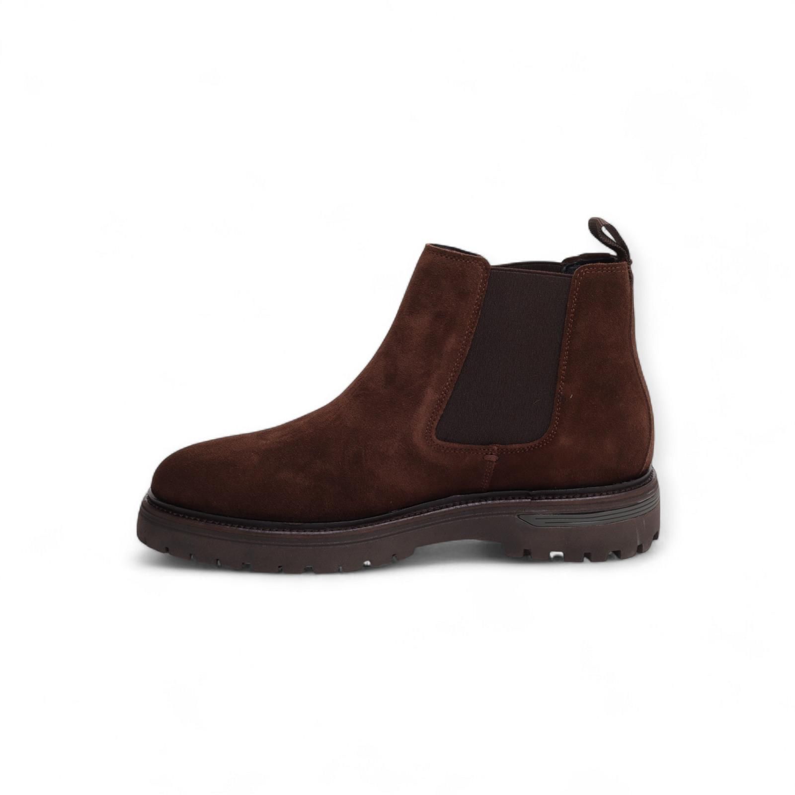 Enkellaarsje Anquetil van Cycleur de Luxe voor heren. Deze enkellaars is in bruin suède. Heeft 2 rekkers aan de zijkanten. Is op een dikke zool die voor aangenaam comfort zorgt. De binnenzool is uitneembaar.