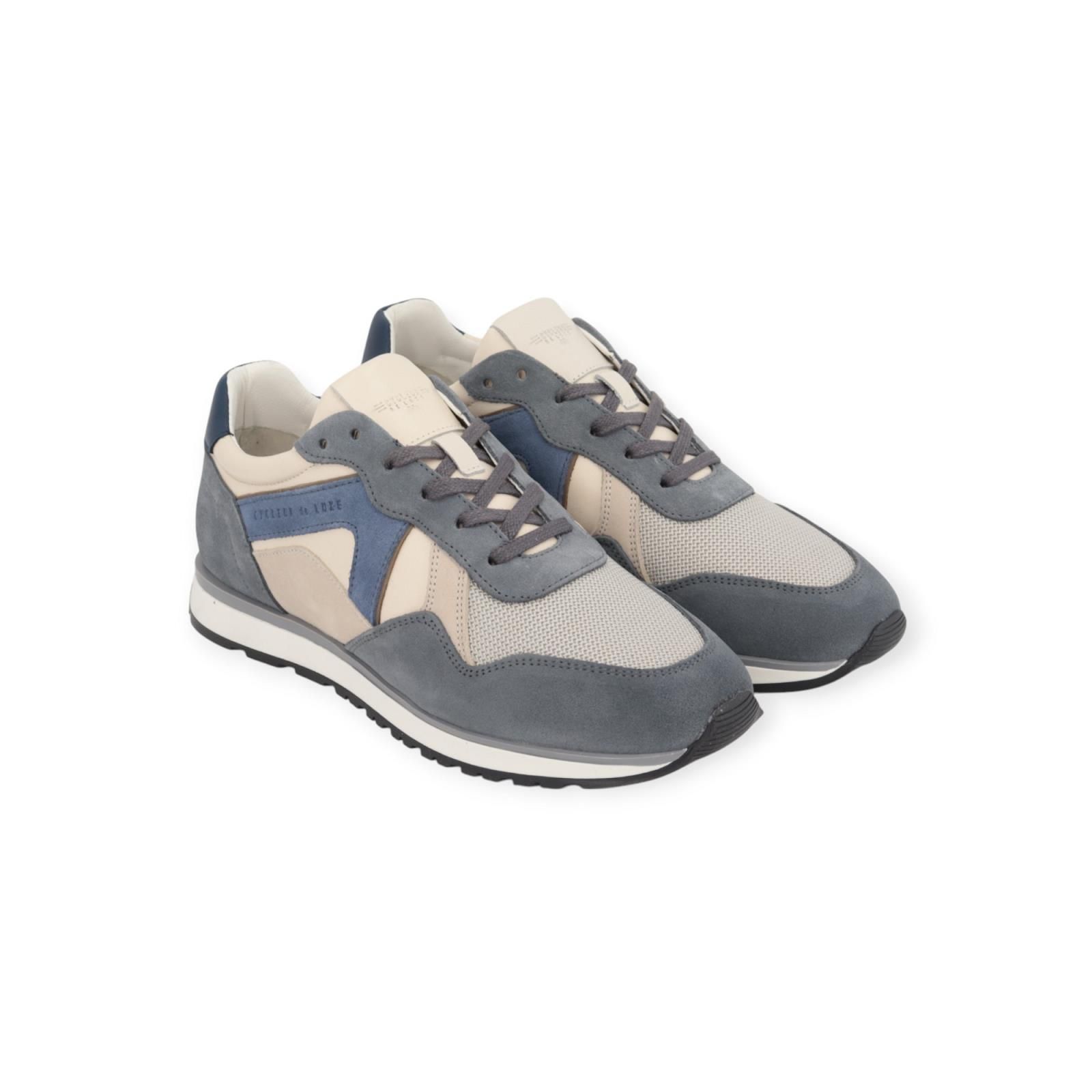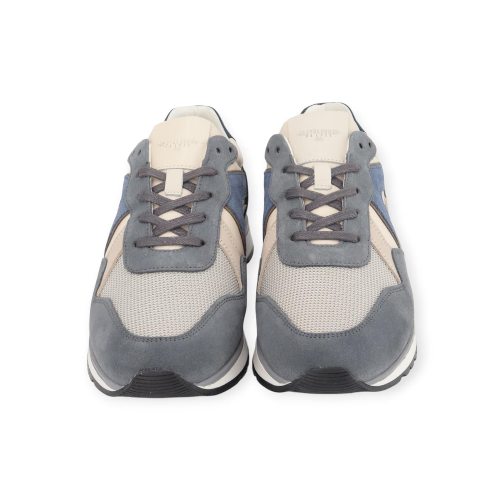 Sneaker Campy P2 van Cycleur De Luxe voor heren. Deze runner is in blauw suède met off wit mesh en nylon. Heeft een aangename lichte zool met een dempende uitneembare binnenzool.