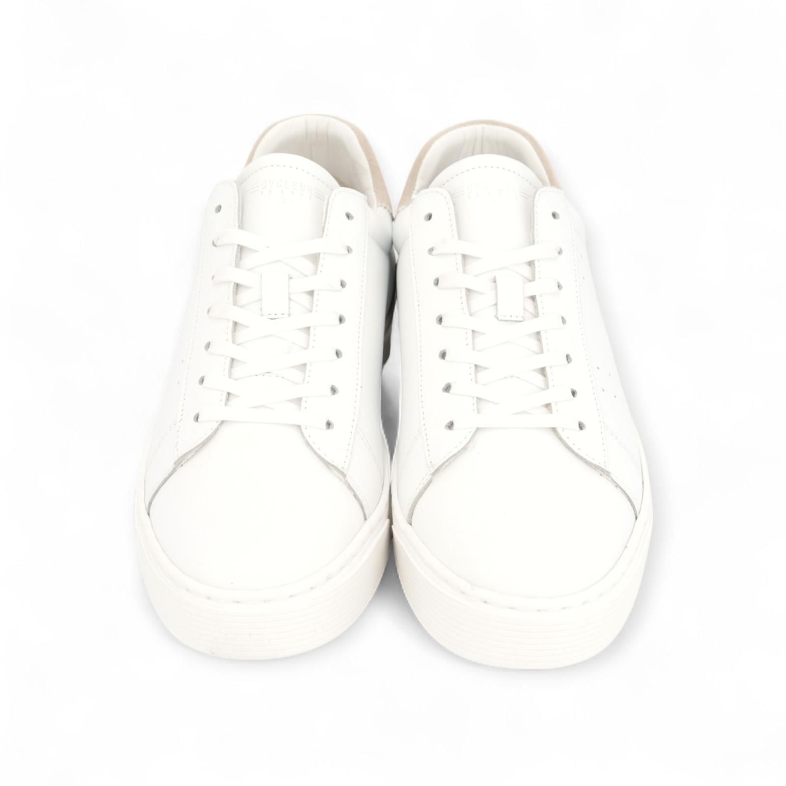 Cycleur de Luxe sneaker JUMP F voor mannen. Deze witte sneaker is volledig in leder met suède beige aan de achterkant. Heeft een vaste rubberen zool en een uitneembare binnenzool.