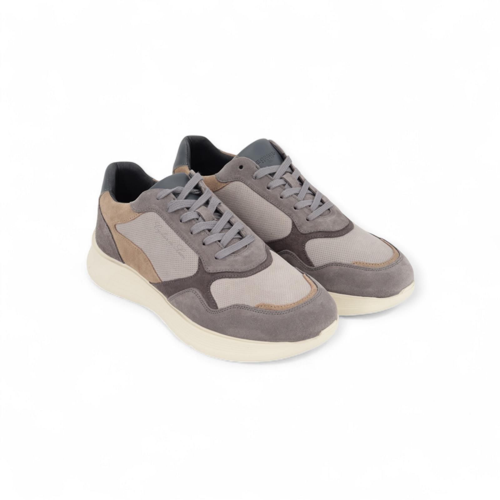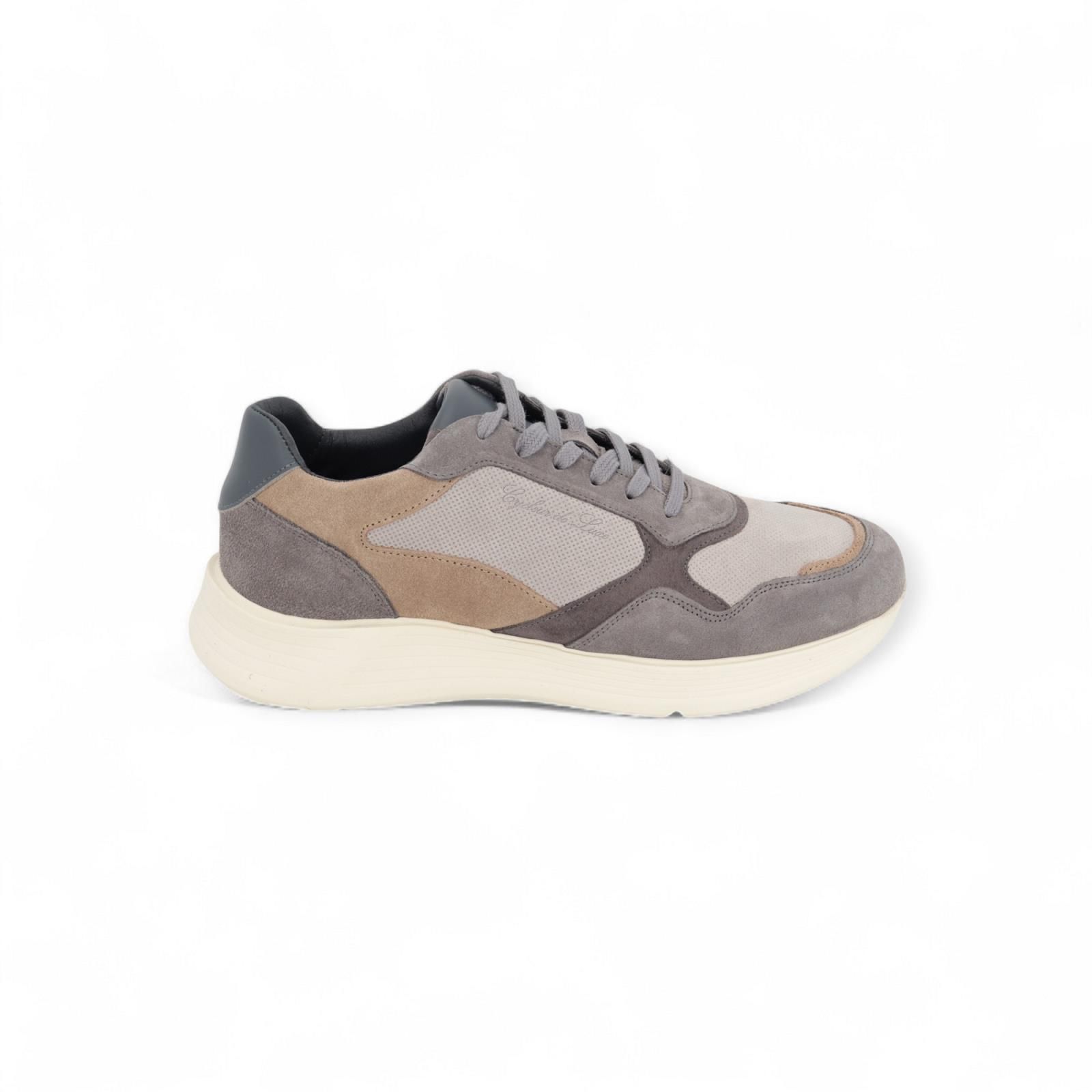 Sneaker RP2 van Cycleur De Luxe voor heren. Deze sneaker is in grijze tinten suède met beige stukken suède. Is op een dikke zool met een uitneembare binnenzool.