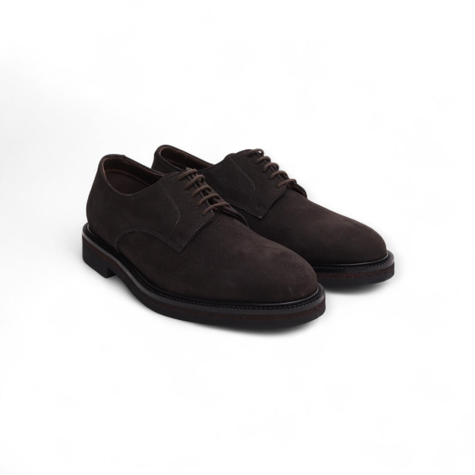 Derby geklede bruine veterschoen van Fratelli Rossetti voor heren is gemaakt van zacht nubuck. De uitneembare binnenzool en de rubberen zool met antislip zorgen voor een hoog draagcomfort.