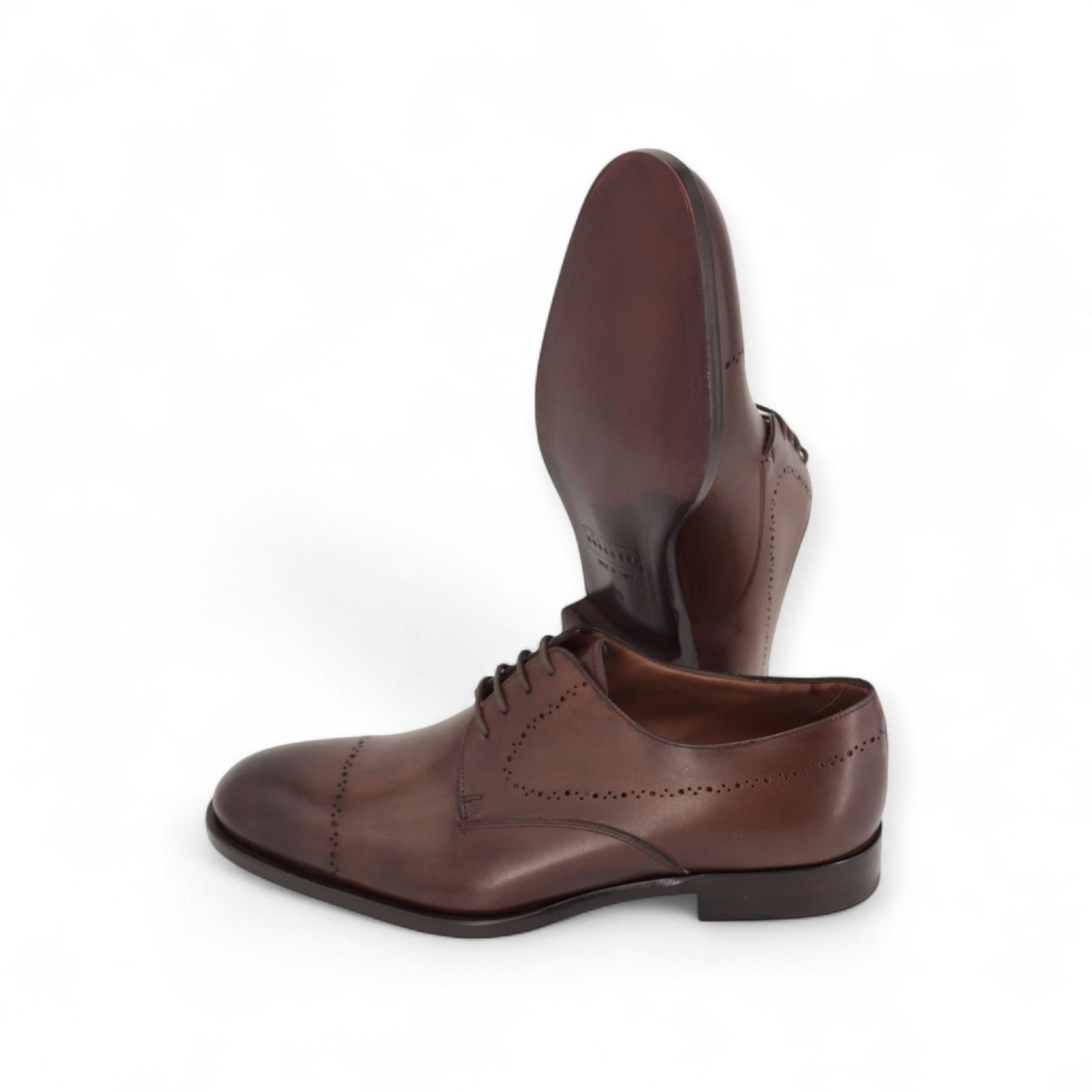14785-01 oxford Fratelli Rossetti bruine veterschoen voor heren is tijdloze elegantie. De perforaties verfraaien de bovenkant en zijkant van de schoen. Door de exclusieve ambachtelijke behandeling krijgt het leer nog meer glans. De schoen is afgewerkt met een leren zool.