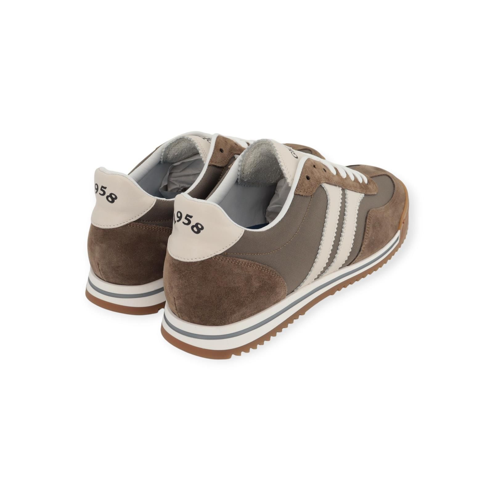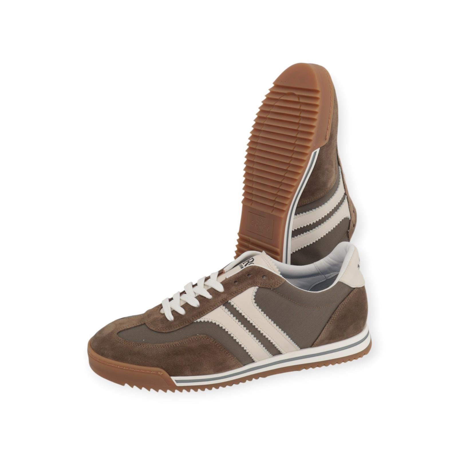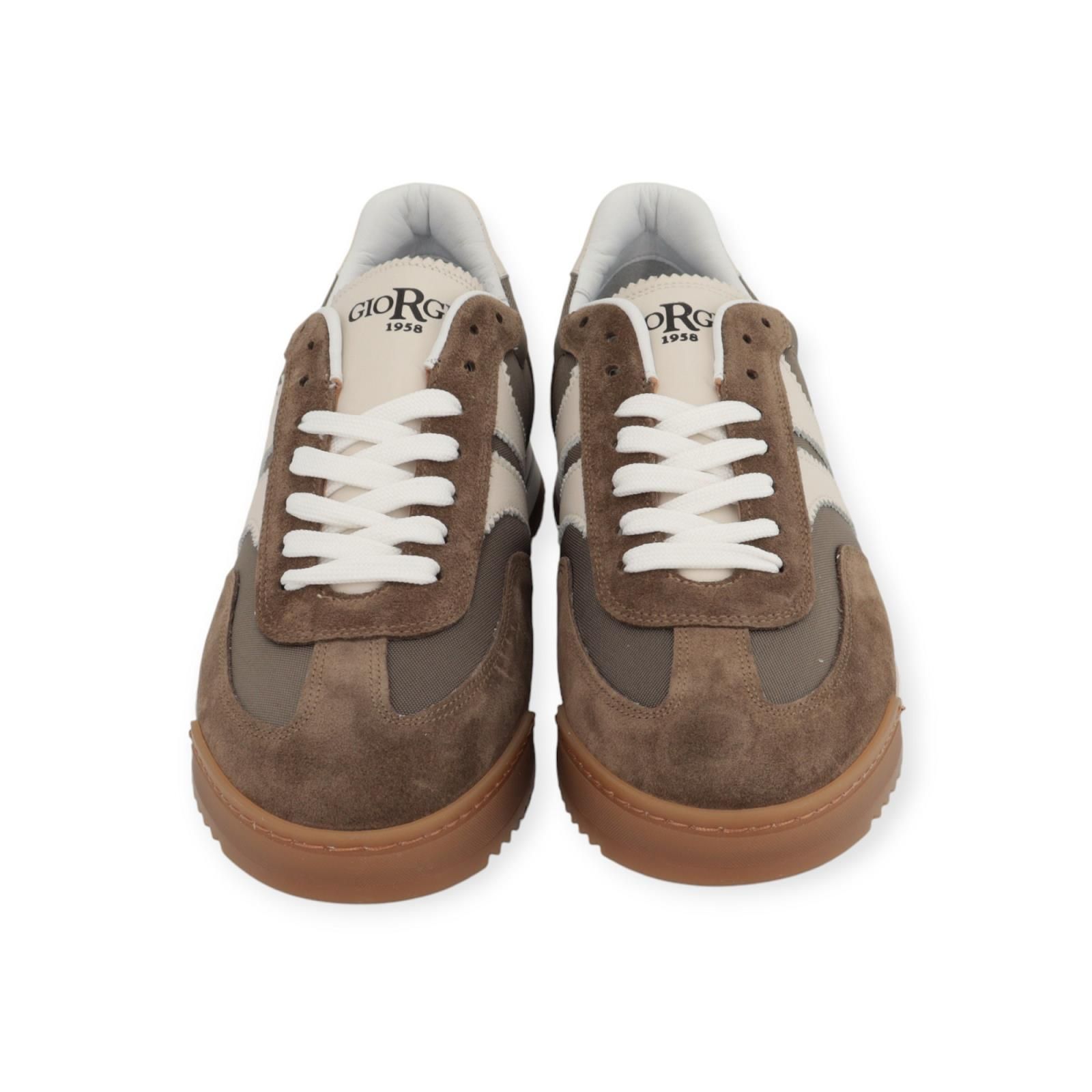 Sneaker van Giorgio voor heren. Deze sneaker is in bruin suède met mesh. Mooi afgewerkt met gekarteld off wit leer aan de zijkant. Is op een aangename gummyzool en de binnenzool is uitneembaar.