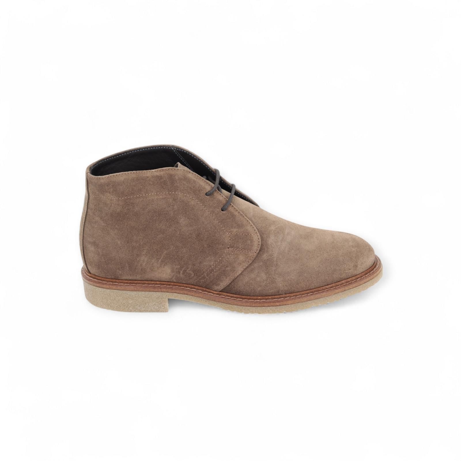 Enkellaars van Giorgio voor heren. Deze enkellaars is in taupe suède met een vetersluiting. Heeft een aangename crepezool die voor warmte en comfort zorgt.