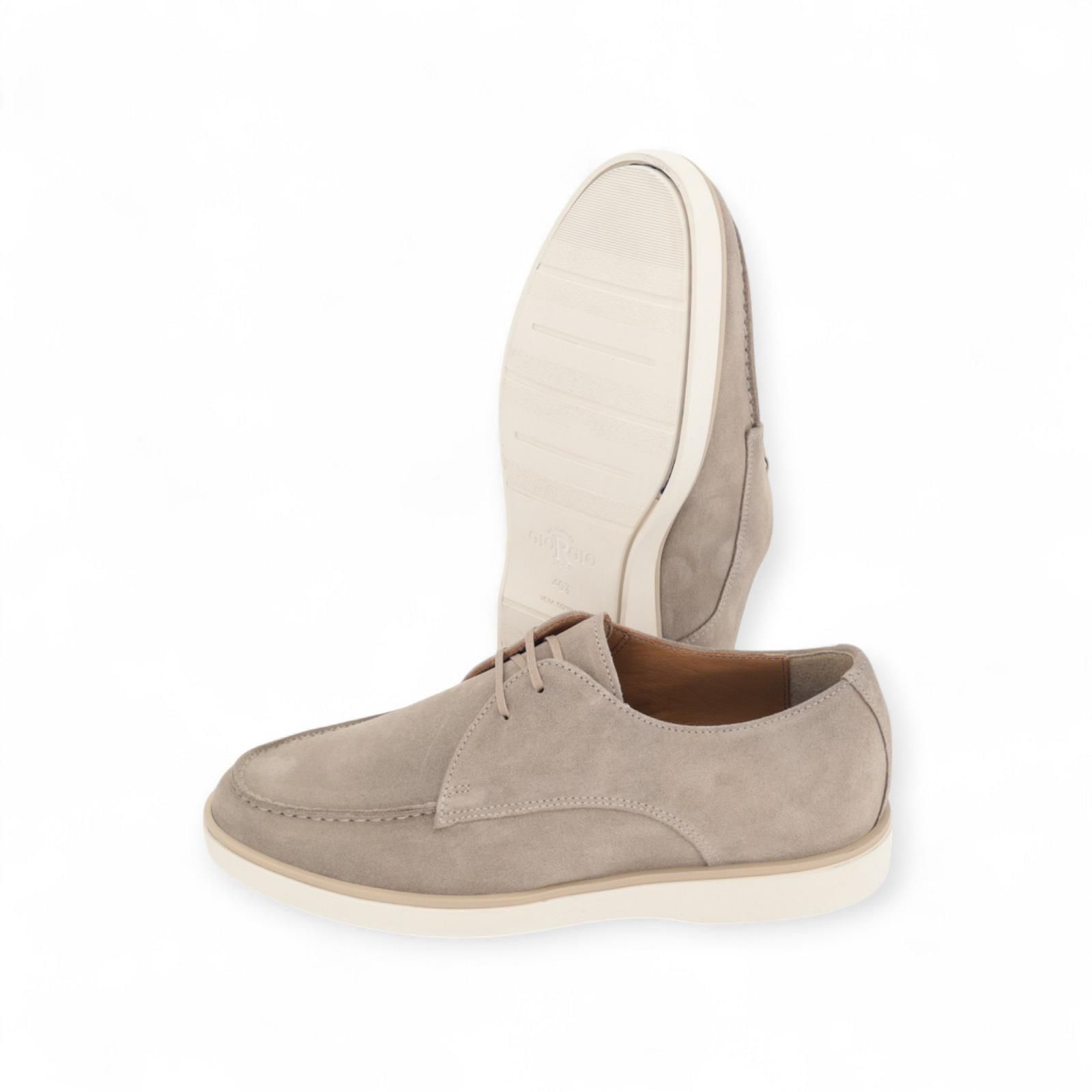 Giorgio veterschoen voor heren. Deze prachtige schoen in beige / zandkleur is mooi afgewerkt met een lichte zool en een camel kleurige rand. Aan de voorkant is er een extra stekking die het model nog iets eleganter maakt. De schoen is volledig in leder suède en heeft een uitneembare zool. Kan je zowel casual als chique dragen.