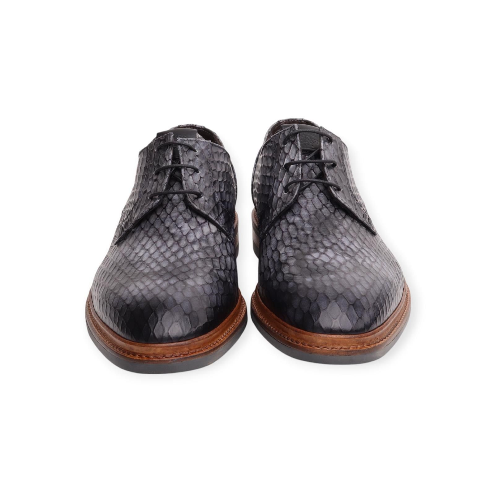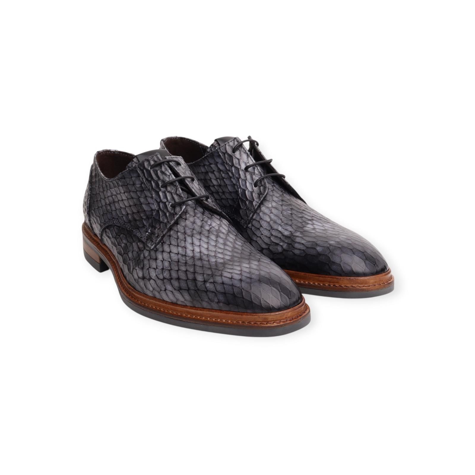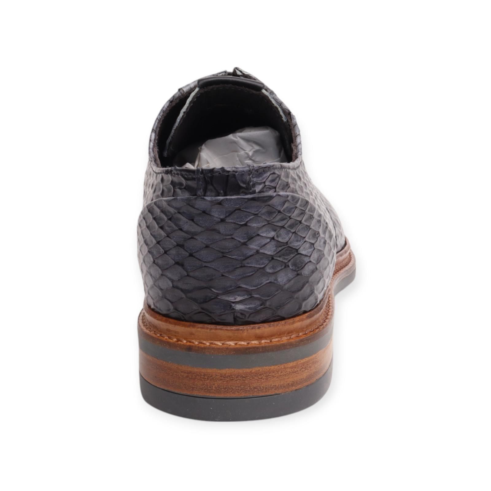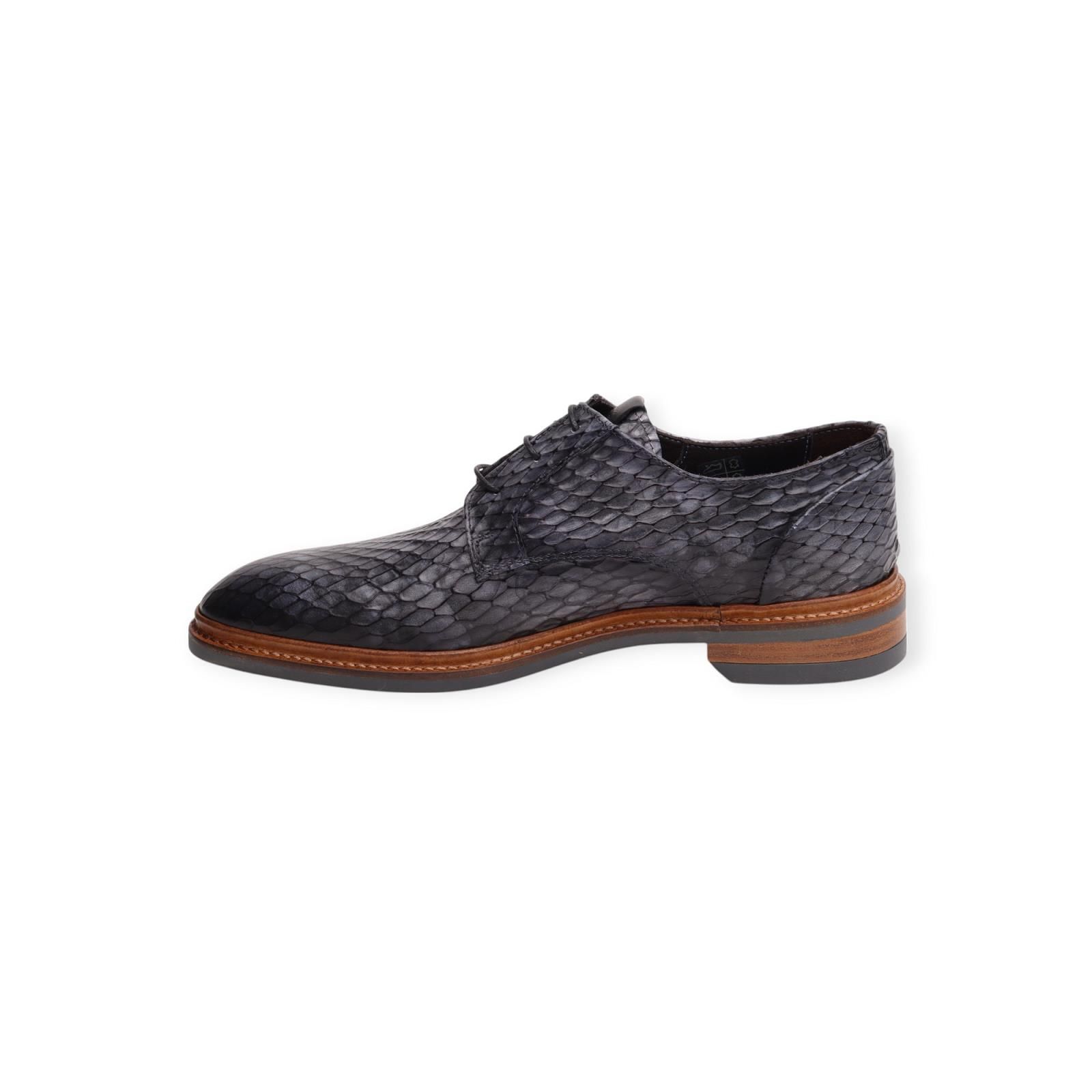 Veterschoenen van Giorgio voor heren. Deze elegante schoenen zijn in geschubt blauw/grijs leder. Afgewerkt met een bruin leder randje rond de zool. Heeft een uitneembare binnenzool.