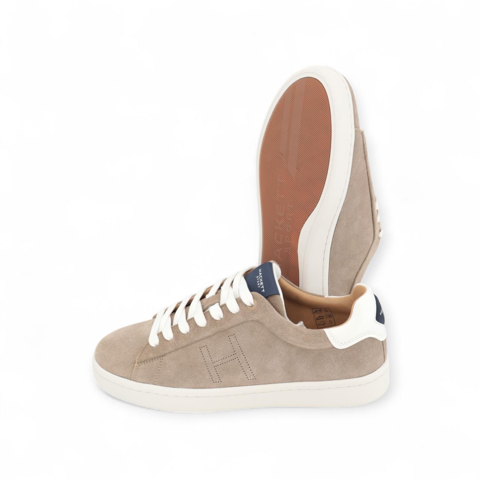 Bond sneaker van Hackett sport voor heren. Deze zand/ beige sneaker is casual chique. Volledig in leder en afgewerkt met de H geperforeerd aan de zijkanten. De hiellip is in wit met in blauw logo van Hackett sport in verwerkt. De binnenzool is uitneembaar.
