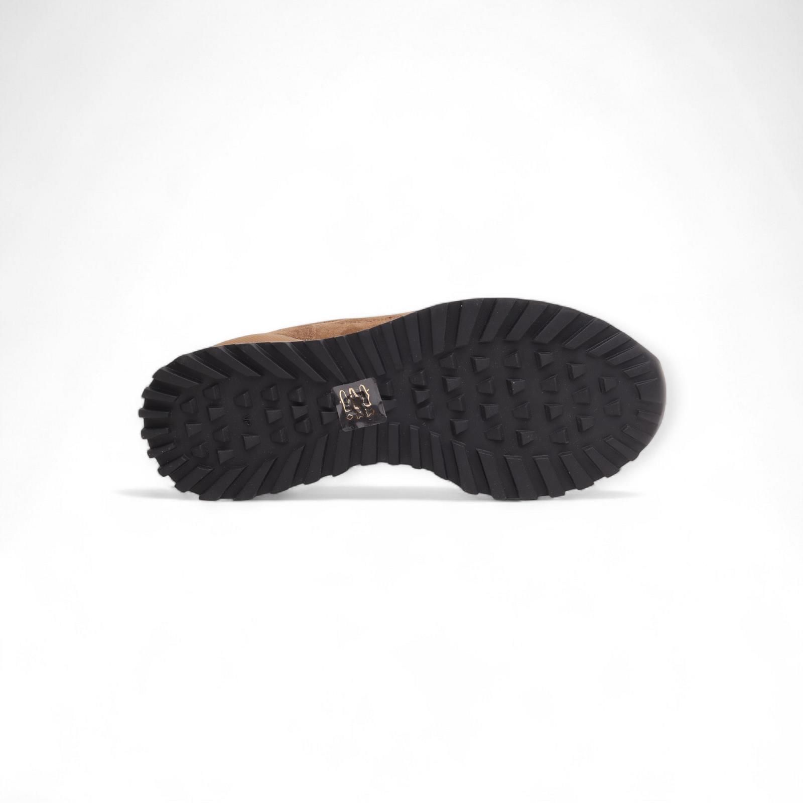 Sneaker Chad Active van Hackett voor heren. Deze runner is in cognac en camel suède met achteraan een bruin leder en bruine veters. Is afgewerkt met stiksels en de H aan de zijkant. Is op een dikke zool met achteraan een extra 3D print in de hiel. De binnenzool is uitneembaar