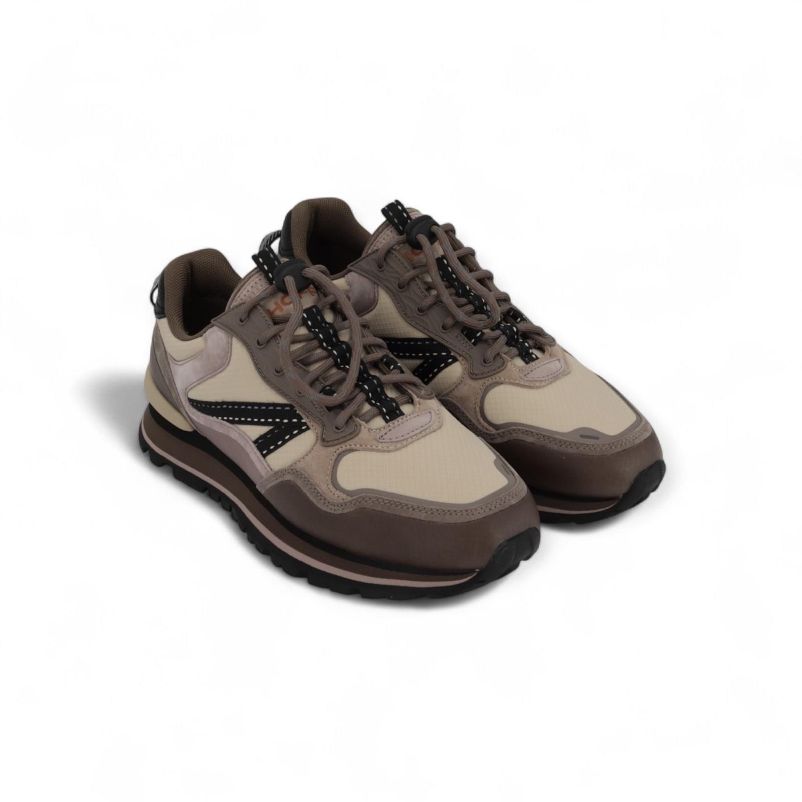 Sneaker City Off Road van Hoff voor heren. Deze sneaker is gemaakt in verschillende materialen en texturen in grijs / kaki tinten. De ronde vetersluiting zorgt voor een perfecte fit. Heeft een dikke zool die licht en flexibel aanvoelt maar toch voor extra grip zorgt. De binnenzool is uitneembaar.