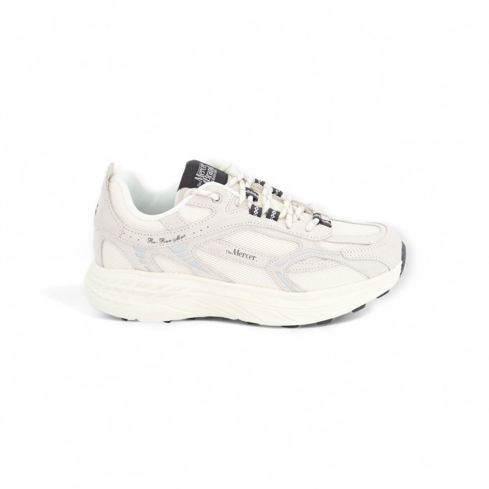 Sneaker The Re-Run Max van Mercer voor heren. Deze runner is in off wit mesh en suède. Heeft een dikke rubberen zool die ervoor zorgt dat elke stap comfortabel aanvoelt. De binnenzool is uitneembaar.