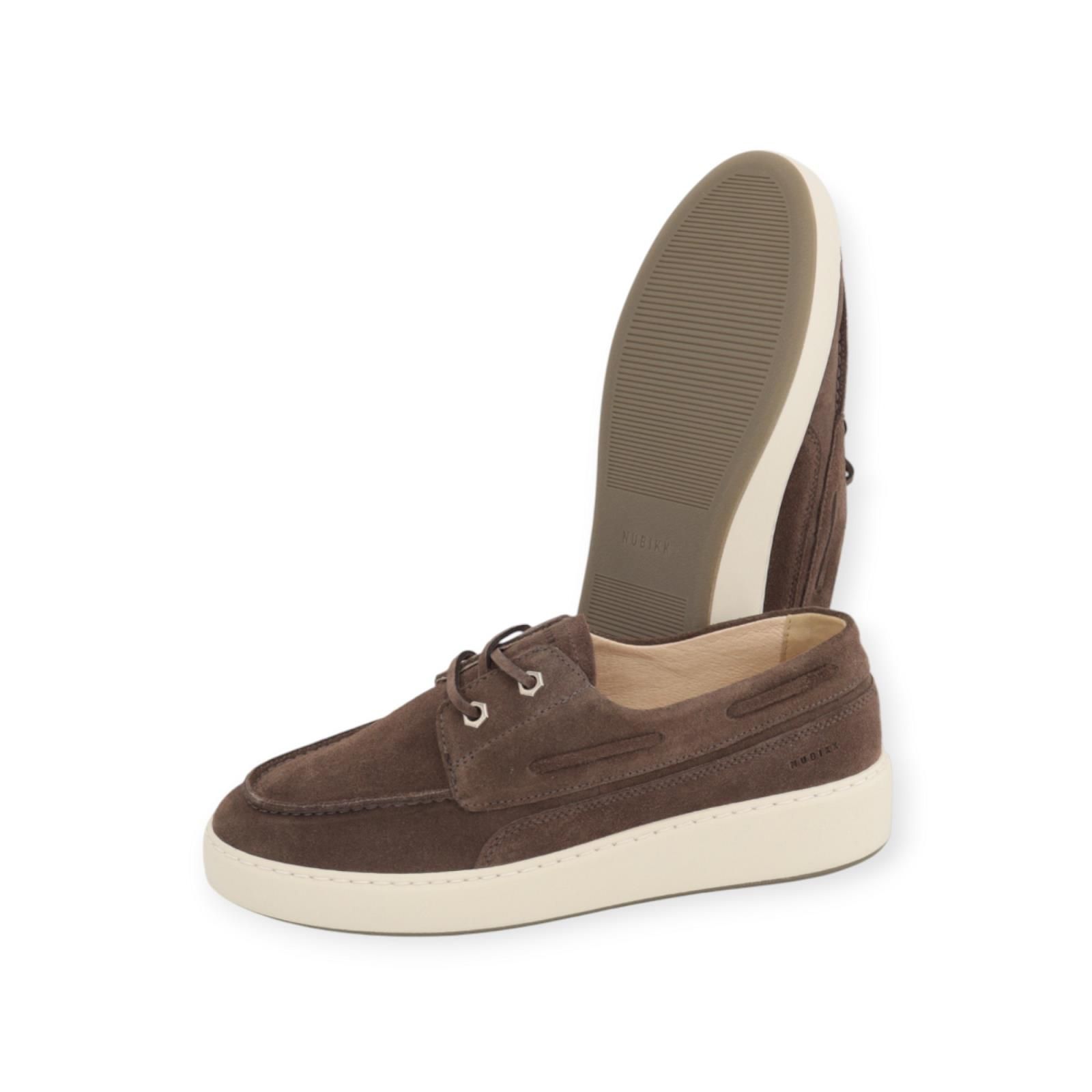 Mocassin Jiro Yacht van Nubikk voor heren. Deze loafer is in zacht bruin suède. Combineert een stoer look met dagelijks comfort. Geïnspireerd naar het type bootschoen design door de veter rondom ontmoet de relaxte stijl van een loafer. De Jiro zool biedt een sportieve uitstraling en een lichte feel. Het profiel is in ‘burned olive’ kleur en geeft een moderne finishing touch. De binnenzool is uitneembaar.