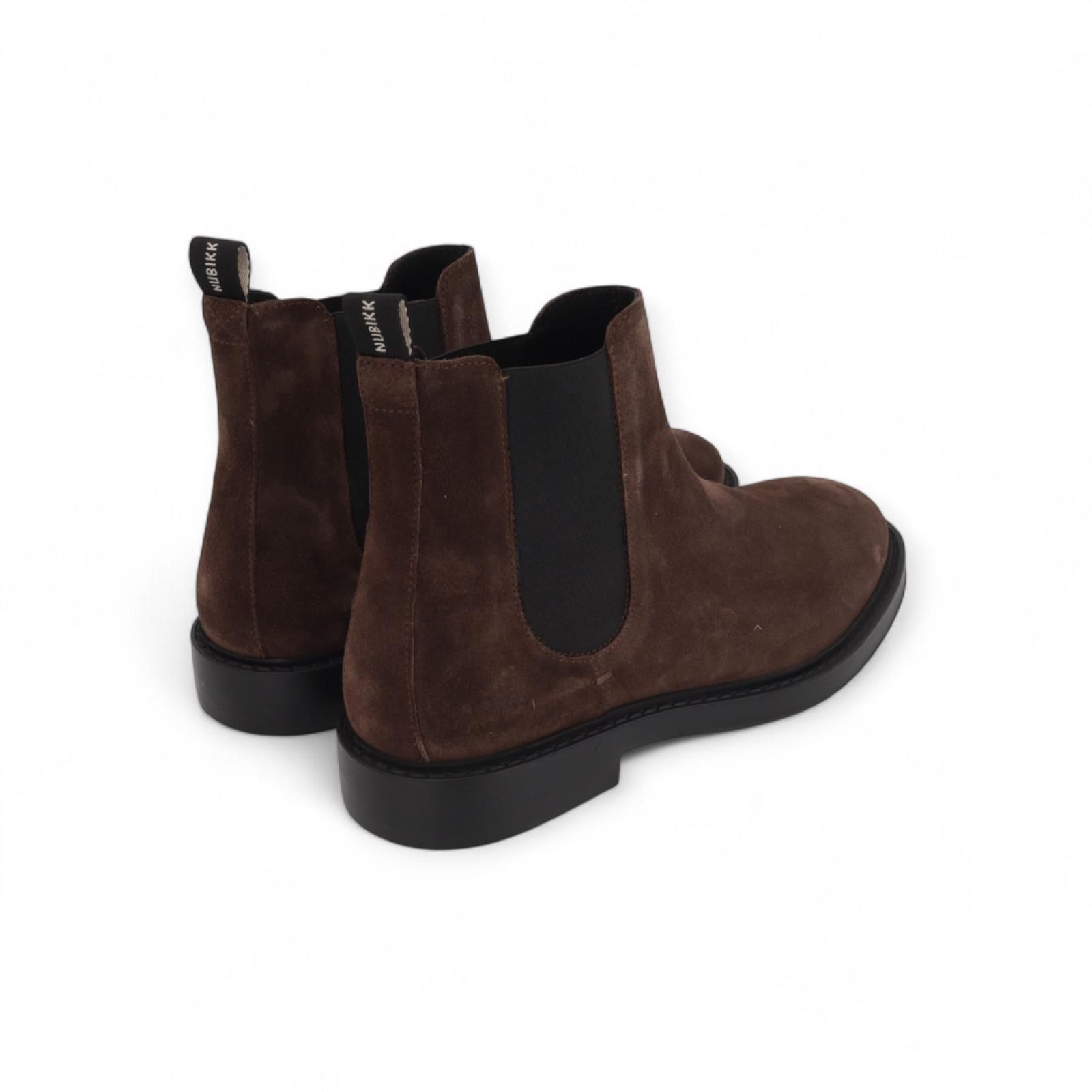 Ontdek NUBIKK's Tucson Rai Chelsea boots in donkerbruin suède. Deze chelsea boots zijn met de hand gemaakt en hebben een elegante uitstraling die moeiteloos elke outfit naar een hoger niveau tilt. Het donkerbruine suède straalt veelzijdigheid uit, terwijl de lichte zool zorgt voor ultiem comfort. Met oog voor detail ontworpen, de Tucson Rai heeft elastische zijkanten, een NUBIKK heat stamp logo en loops aan de achterkant. Binnenin zorgen de luxe leren voering en een uitneembaar voetbed voor een goede pasvorm en een vleugje ingetogen luxe. • Handgemaakt in Portugal • Hoogwaardig bruin suède • Lichtgewicht zool