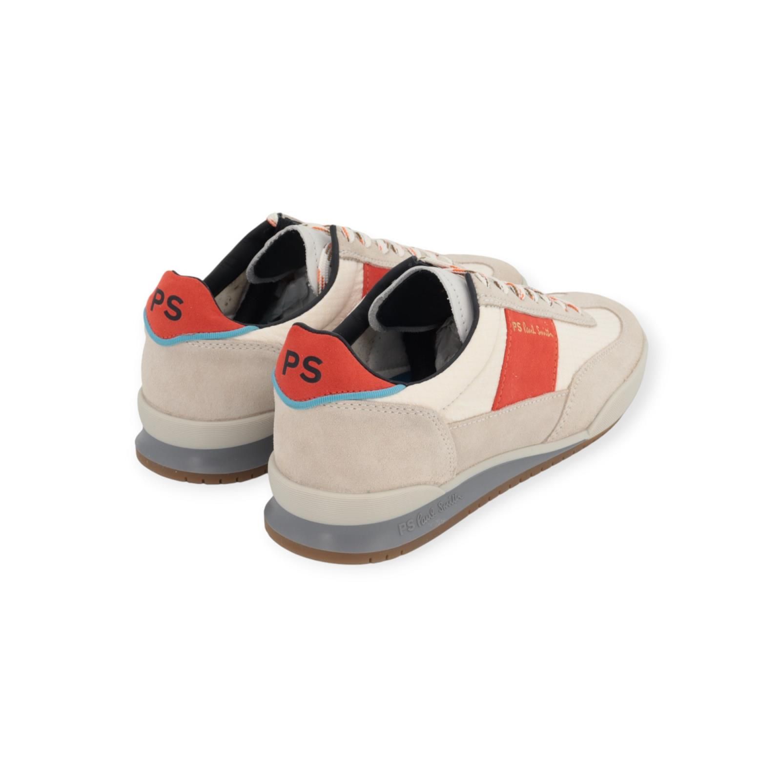 Sneakers Dover van PS Paul Smith voor heren. Deze sneakers zijn in offwit suède leer met nylon in een tonale ruitprint. Is mooi afgewerkt met rood suède aan de zijkant en hielflap met PS Paul Smith logo. De gespikkelde veters zorgen voor een leuke Dover stijl. Heeft een uitneembare binnenzool en een buitenzool met logo en een grijs / wit 3D inzetstuk.