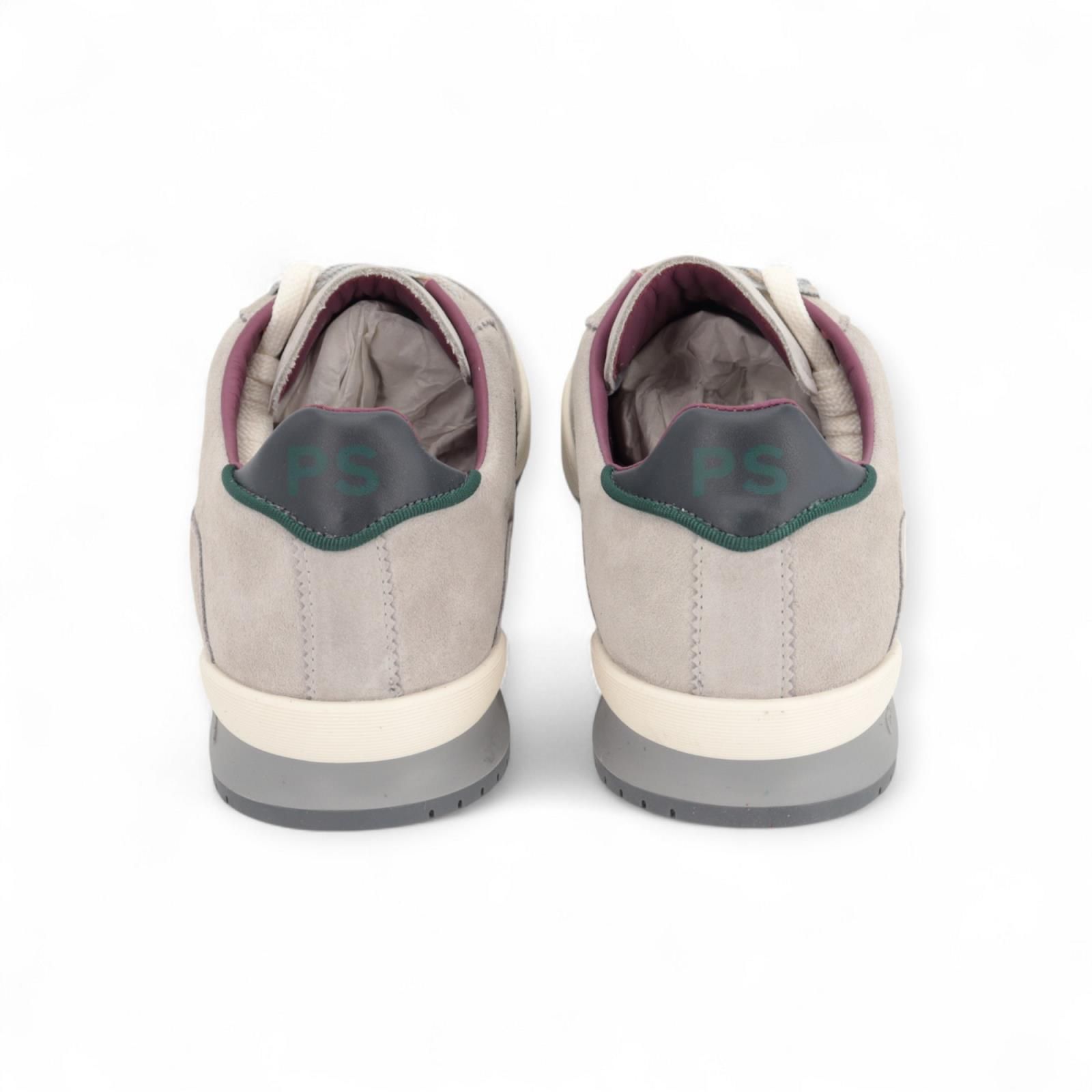 Sneaker Rye van Paul Smith voor heren. Deze sneaker is in grijs suède afgewerkt met blauw stukken leer aan de zijkant en hielflap. Met hun ton-sur-ton grijze en witte zolen zijn deze sneakers perfect te combineren bij iedere gelegenheid. De binnenzool is uitneembaar.