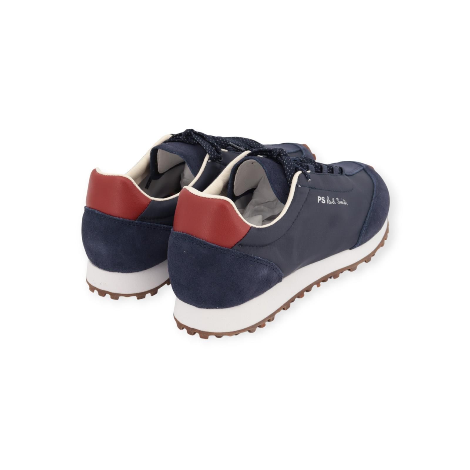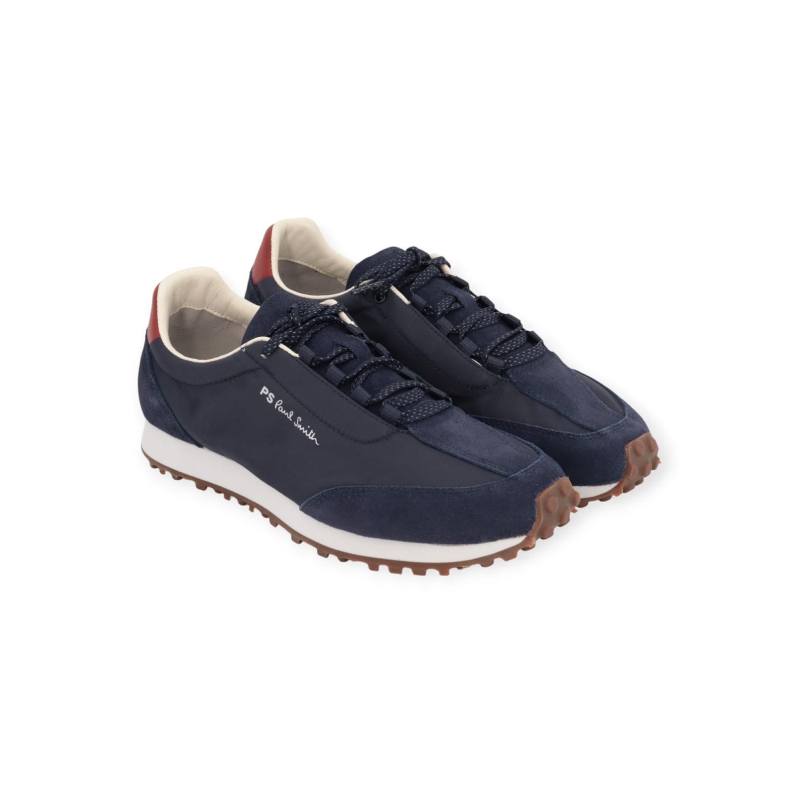 Sneaker Senso van PS Paul Smith voor heren. Deze lichte sneaker is gemaakt in blauw nylon met bijpassende suède details. Is mooi afgewerkt met bijpassende gespikkelde veters. De zachte ‘Vibram’ zool zorgt voor extra duurzaamheid, comfort en grip. De Uitneembare binnenzool is gevoerd met hun populaire ‘Stripe’ print.