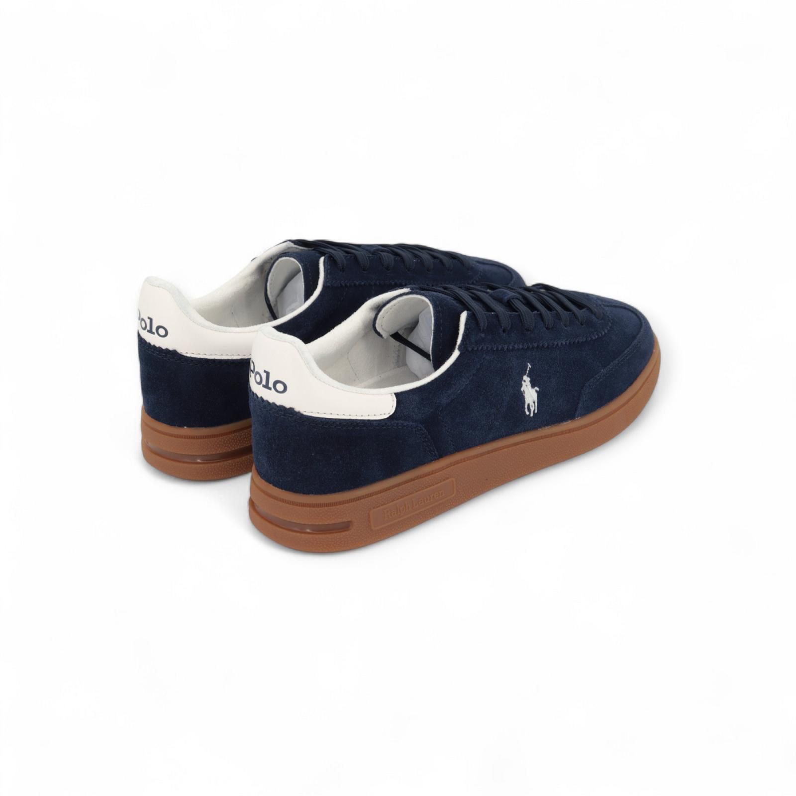 Sneaker Bedford PP van Polo Ralph Lauren voor heren. Deze sneaker is in blauw suède. Afgewerkt met een witte hielflap en het witte iconisch logo aan de zijkant. Is op een bruine gummyzool en de binnenzool is uitneembaar.