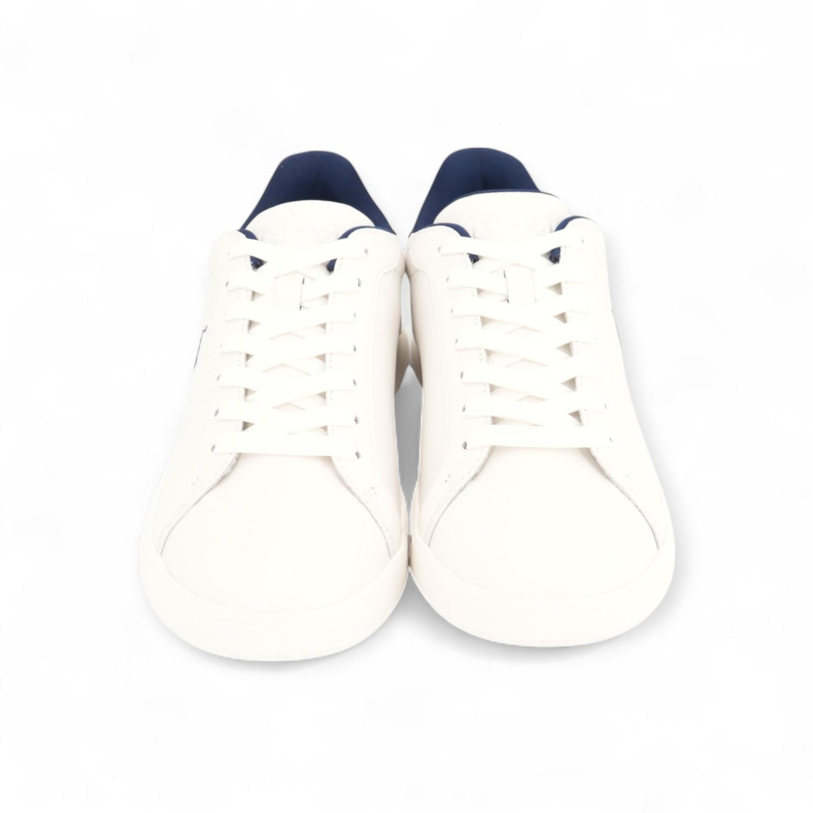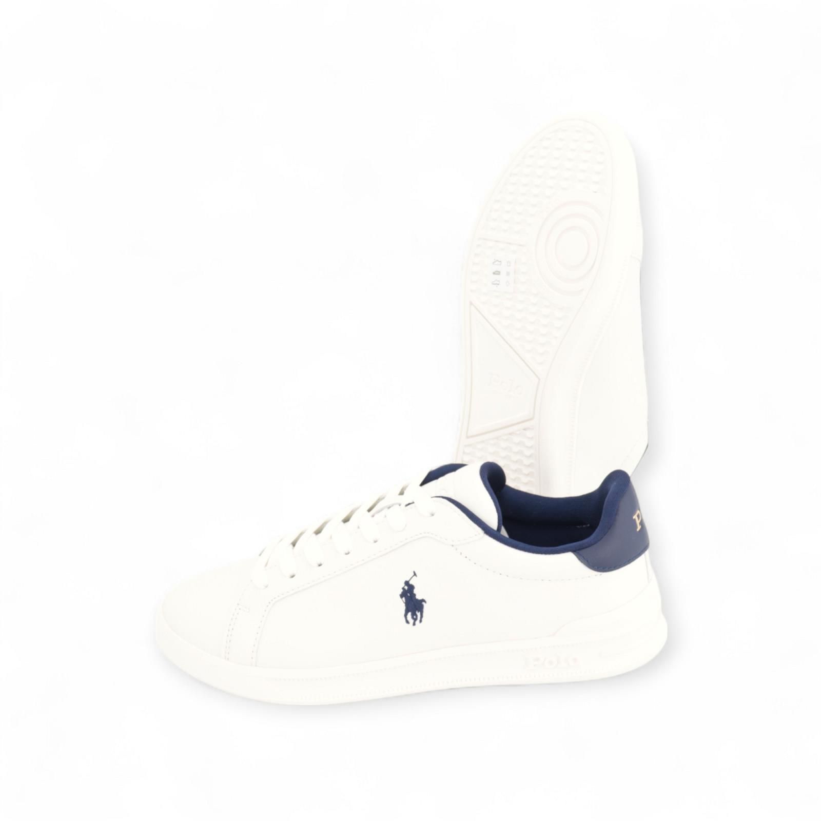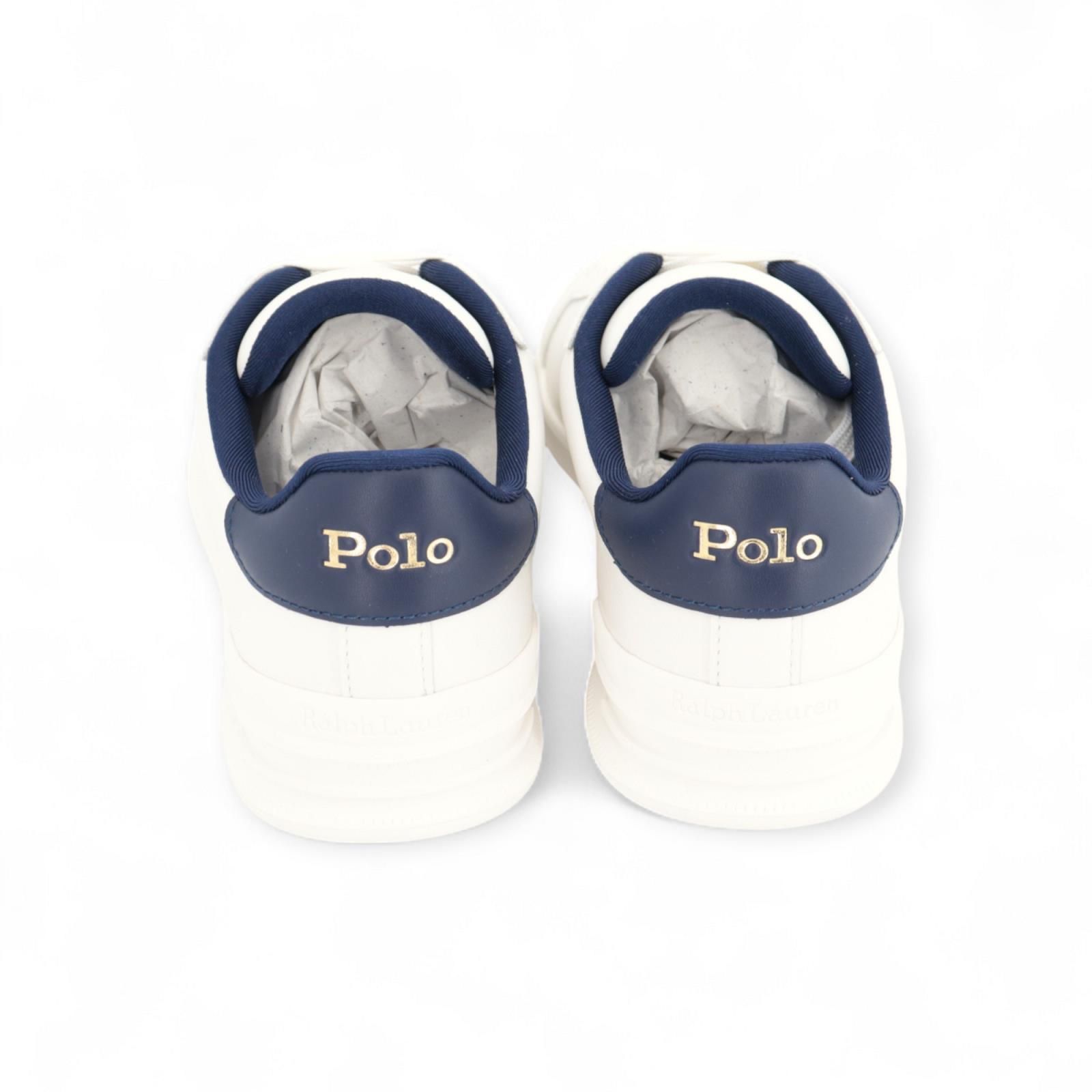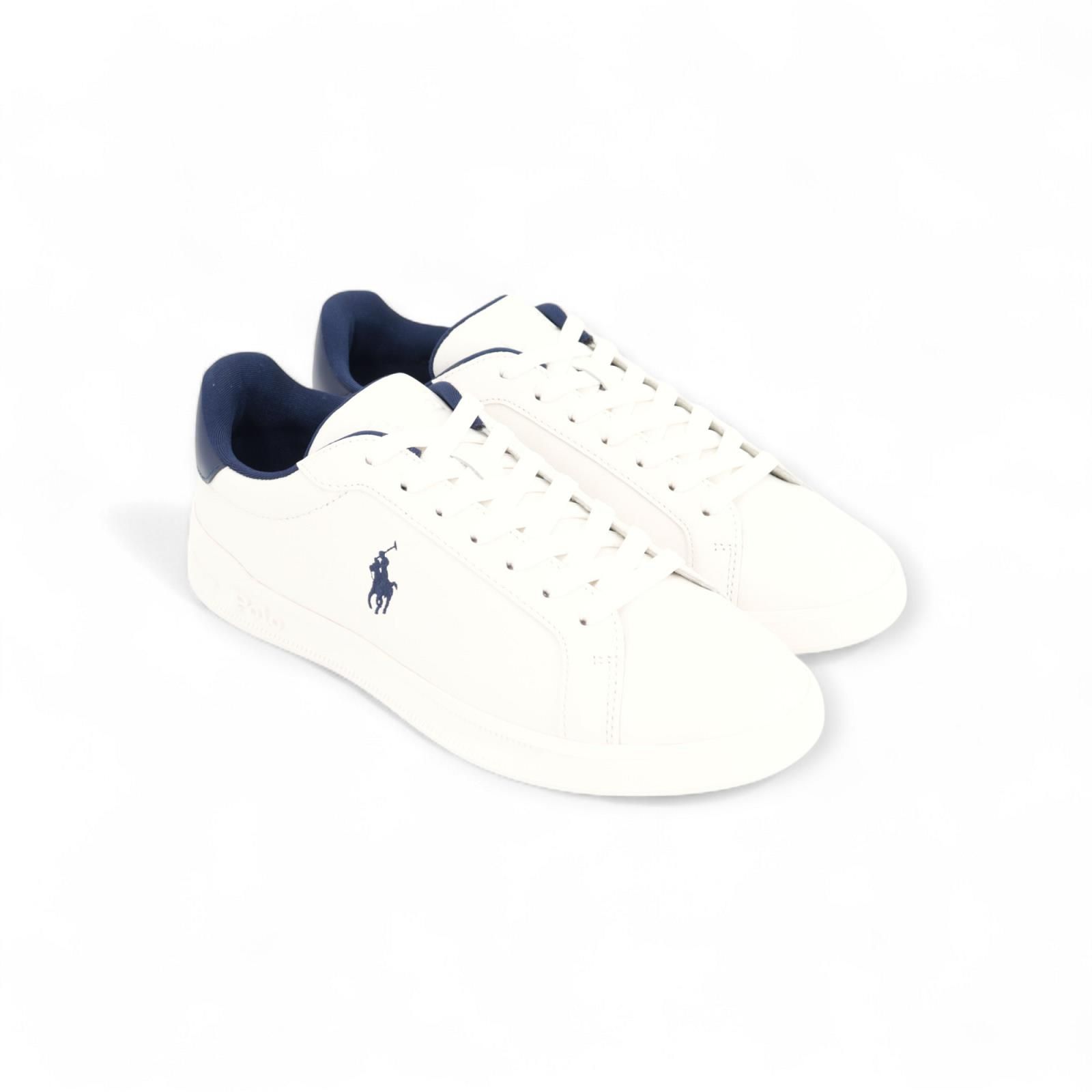 Sneaker Heritage Court II ‘hrt’ van Polo Ralph Lauren voor heren. Deze sneaker is geinspireerd op schoenen die werden gedragen door vroegere tennisprofessionals. De sneaker is volledig in wit leder. Afgewerkt met een blauwe hielflap met gouden logo POLO en het iconische logo paardje aan de zijkant van de schoen.