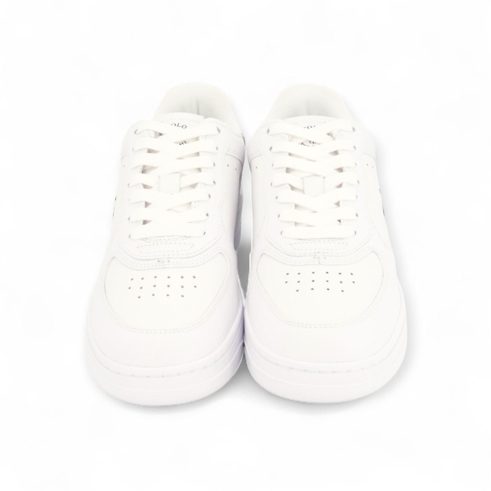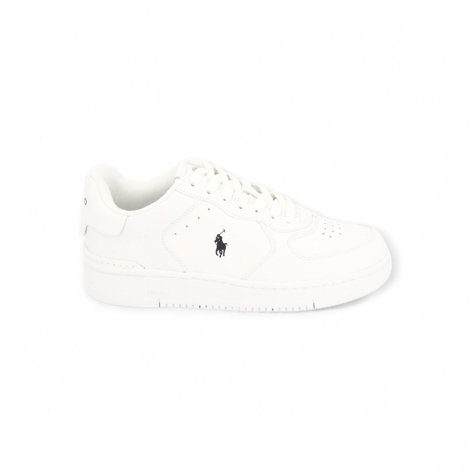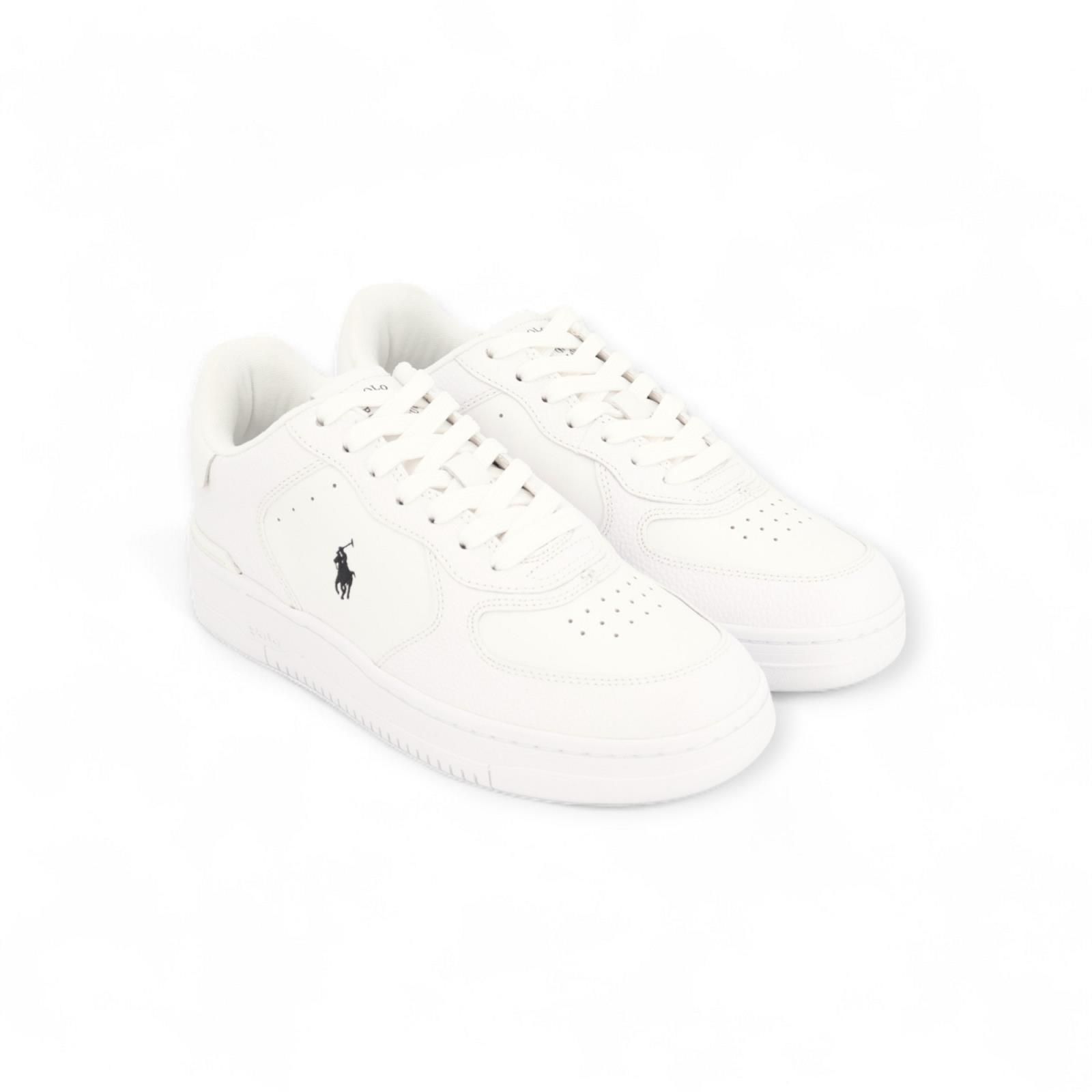 Sneaker Masters Court van Polo Ralph Lauren voor heren. Deze sneaker tilt Polo’s klassieke lage sneaker naar een hoger niveau. Het wit leren bovenwerk combineert streetwear designelementen zoals een geperforeerde schacht met blauwe retro-geïnspireerde logo-accenten. De binnenzool is uitneembaar.