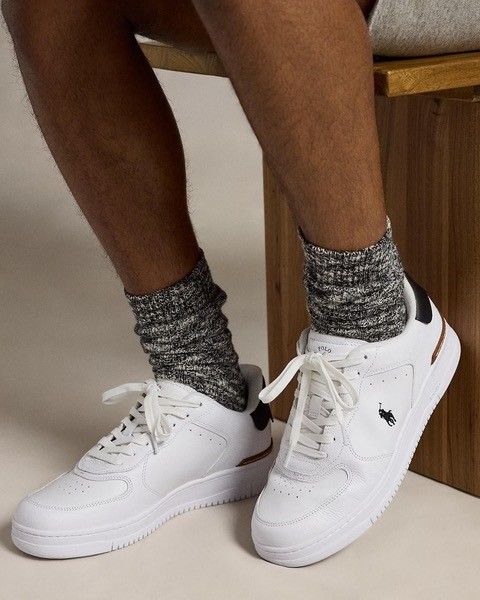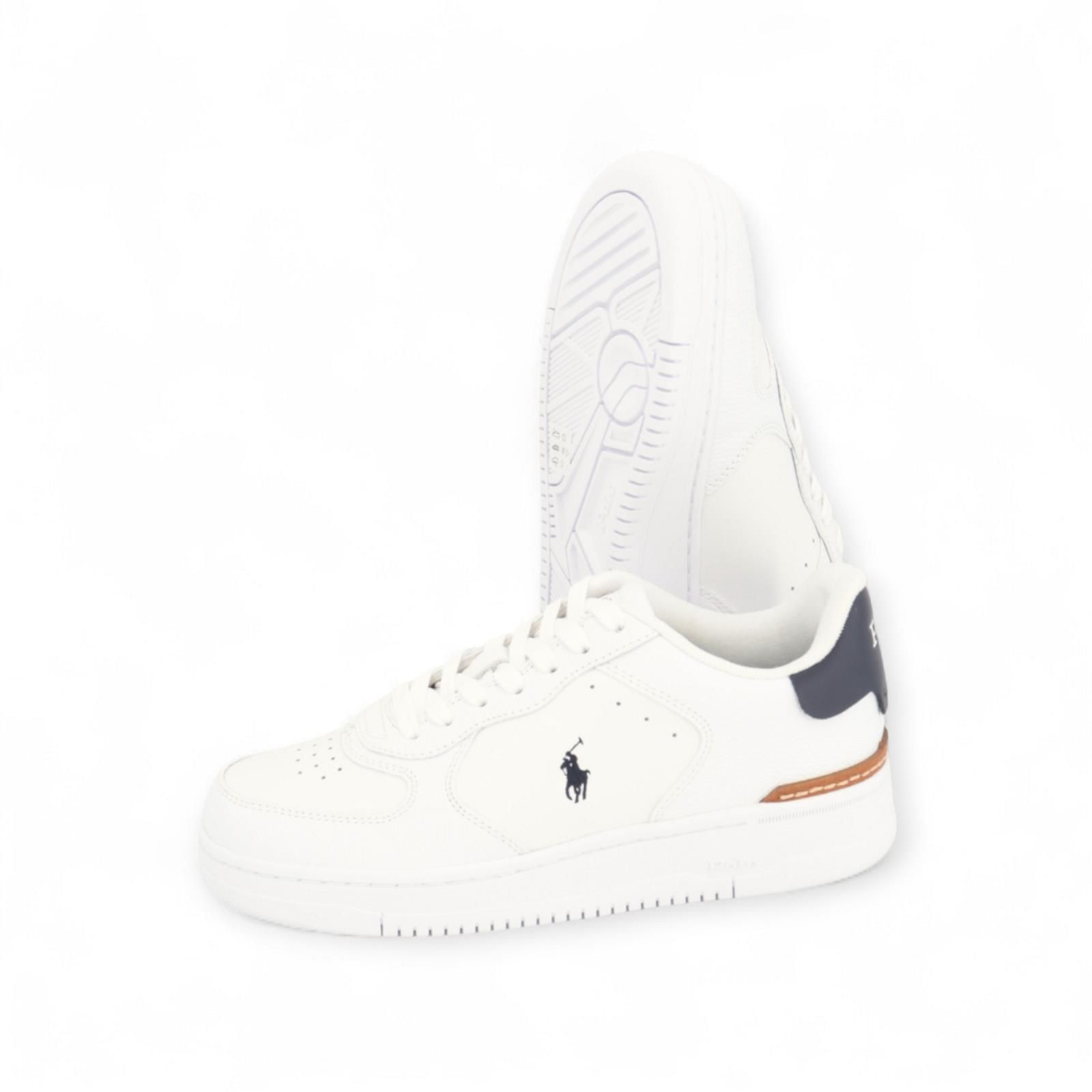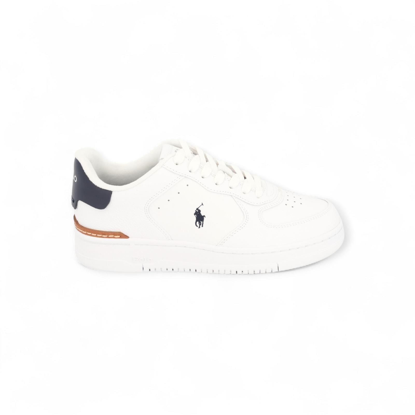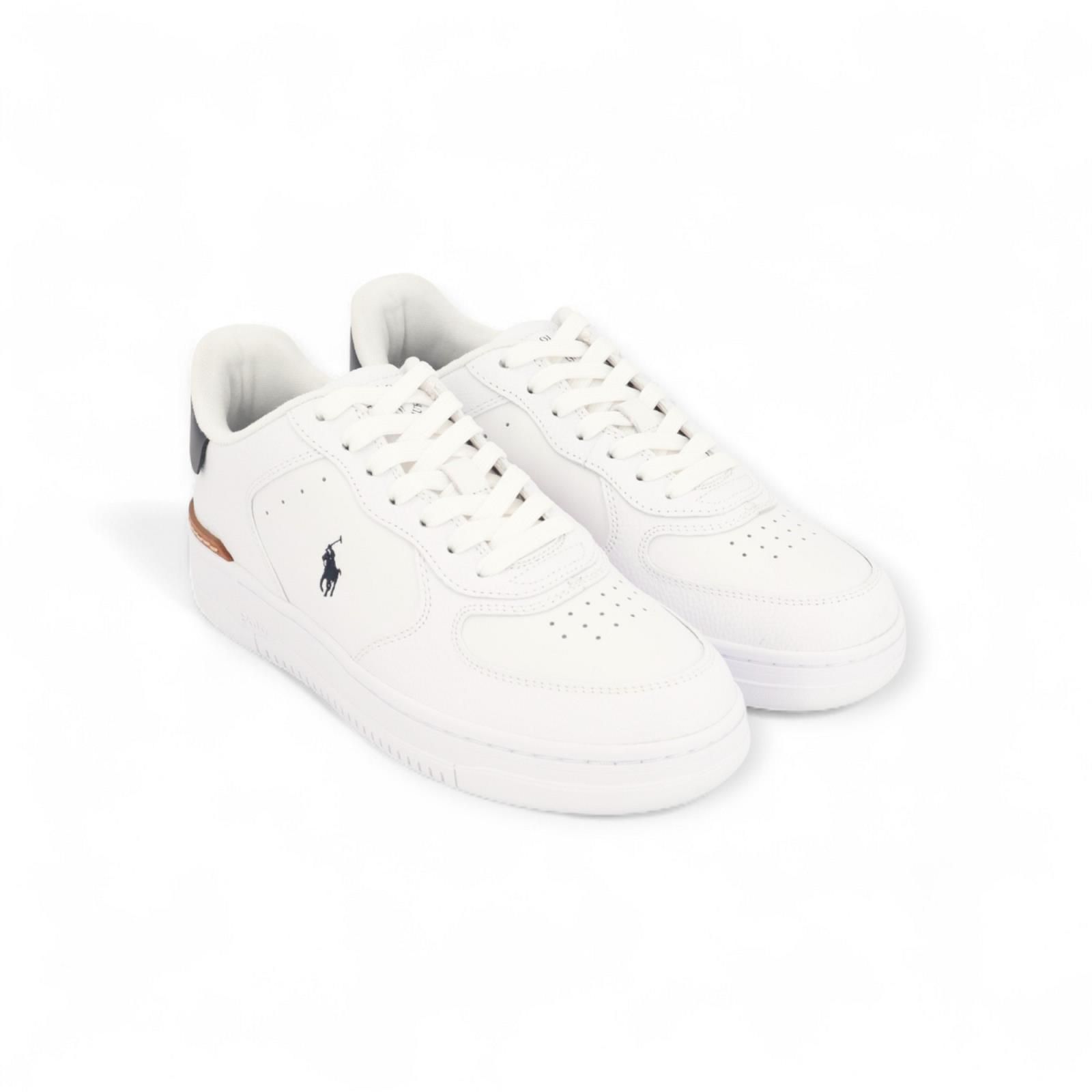 Sneaker Masters Court van Polo Ralph Lauren voor heren. Deze sneaker tilt Polo’s klassieke lage sneaker naar een hoger niveau. Het wit leren bovenwerk combineert streetwear designelementen zoals een geperforeerde schacht met retro-geïnspireerde logo-accenten. Is afgewerkt met een blauwe hiel en een stevige zool. De binnenzool is uitneembaar.