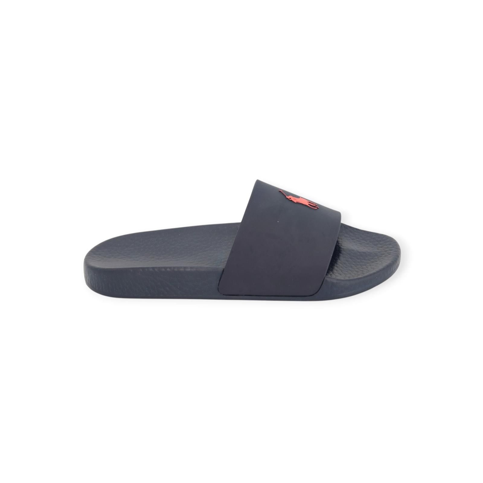 Deze blauwe zwembad slipper / slide sandals van Polo Ralph Lauren is geüpdatet met een voetbed en heeft een Polo-afwerking met de kenmerkende Pony van Ralph Lauren.