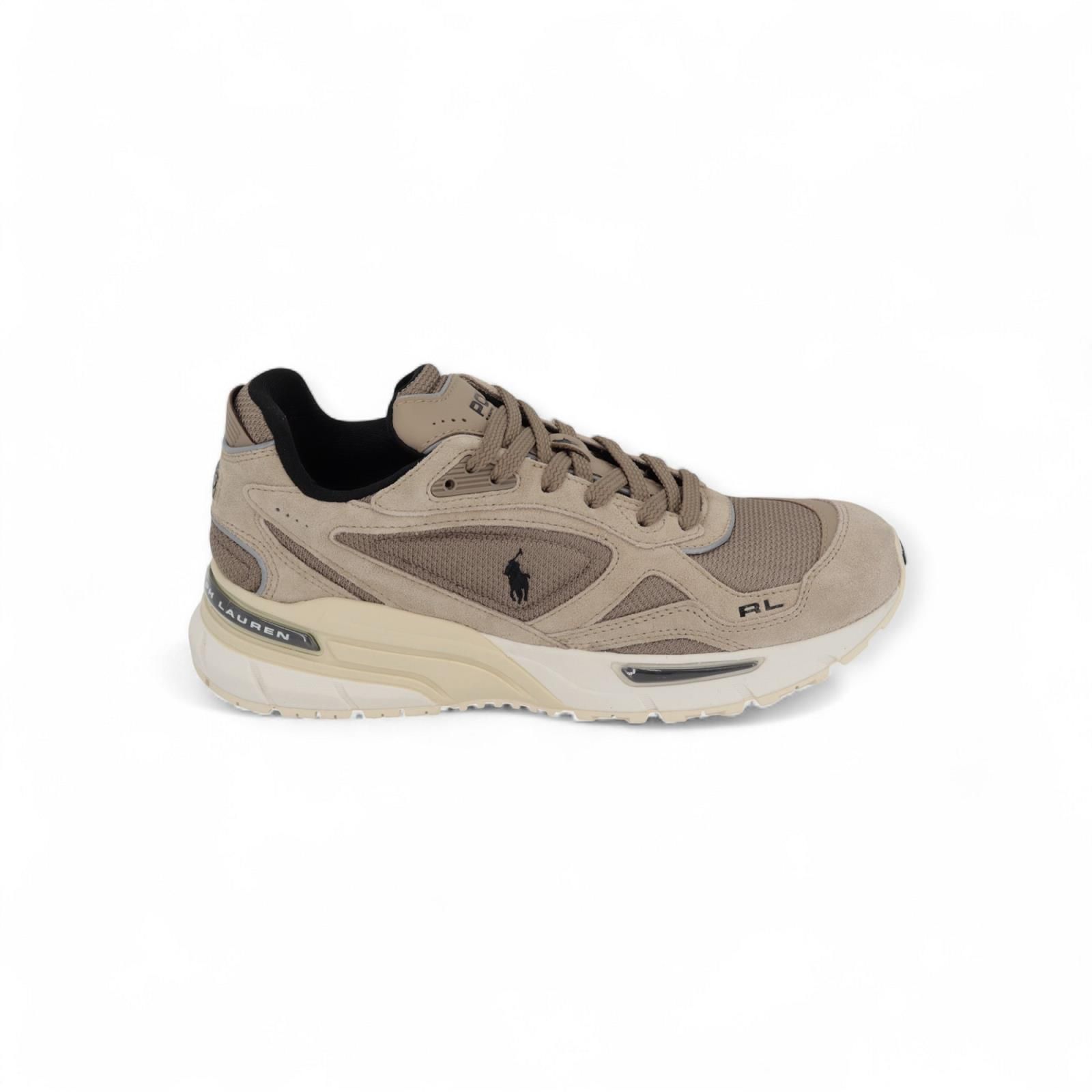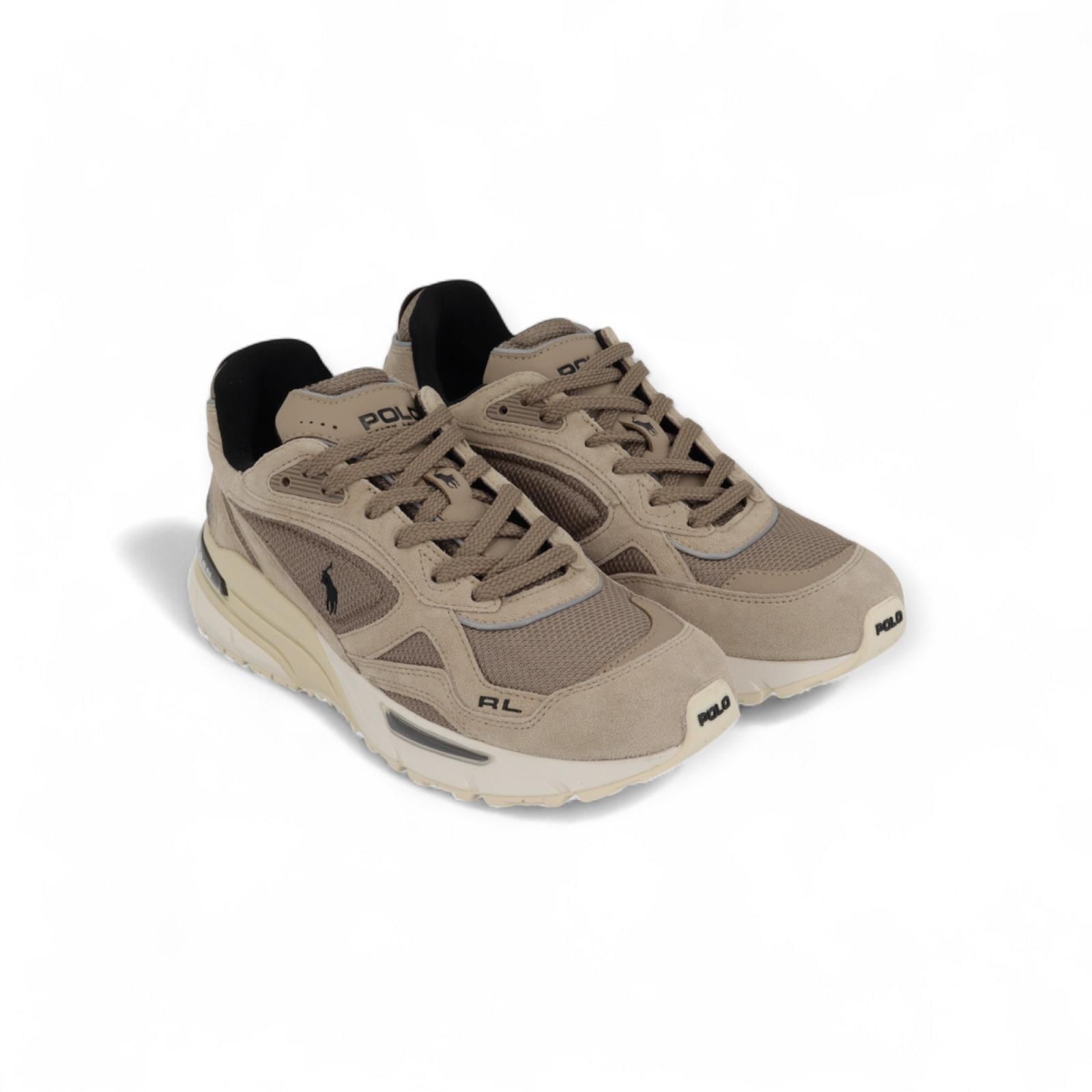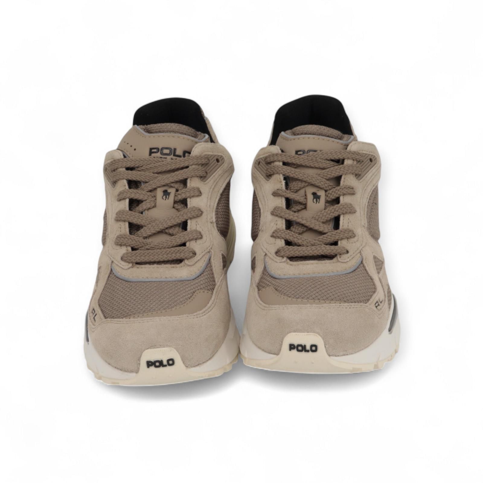 Sneaker Trackstr van Polo Ralph Lauren voor heren. Deze runner is in taupe suède met mesh vervaardigt. Aan de zijkant vind je het kenmerkend zwart Pony logo. Heeft een stevige zool met uitneembare binnenzool.