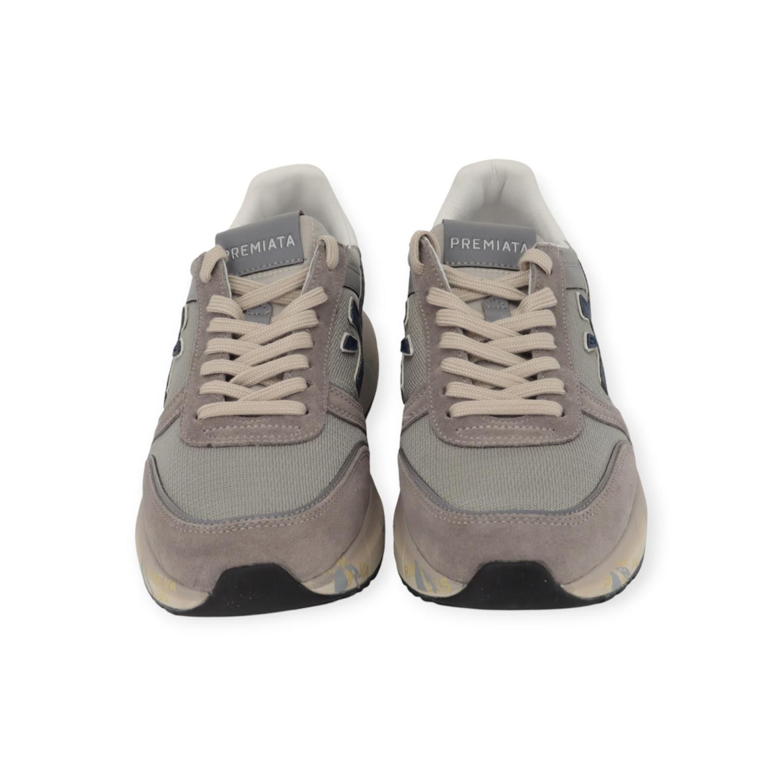 Sneaker Mick van Premiata voor heren. Deze sneaker is in lichtgrijs suède met mesh. Aan de zijkant is het premiata logo in blauw leer en mooi afgewerkt met off wit hielflap. De buitenzool is mooi dempend en versterkt met iconische stijldetails van Premiata. Voelt zeer licht aan en de binnenzool is uitneembaar.