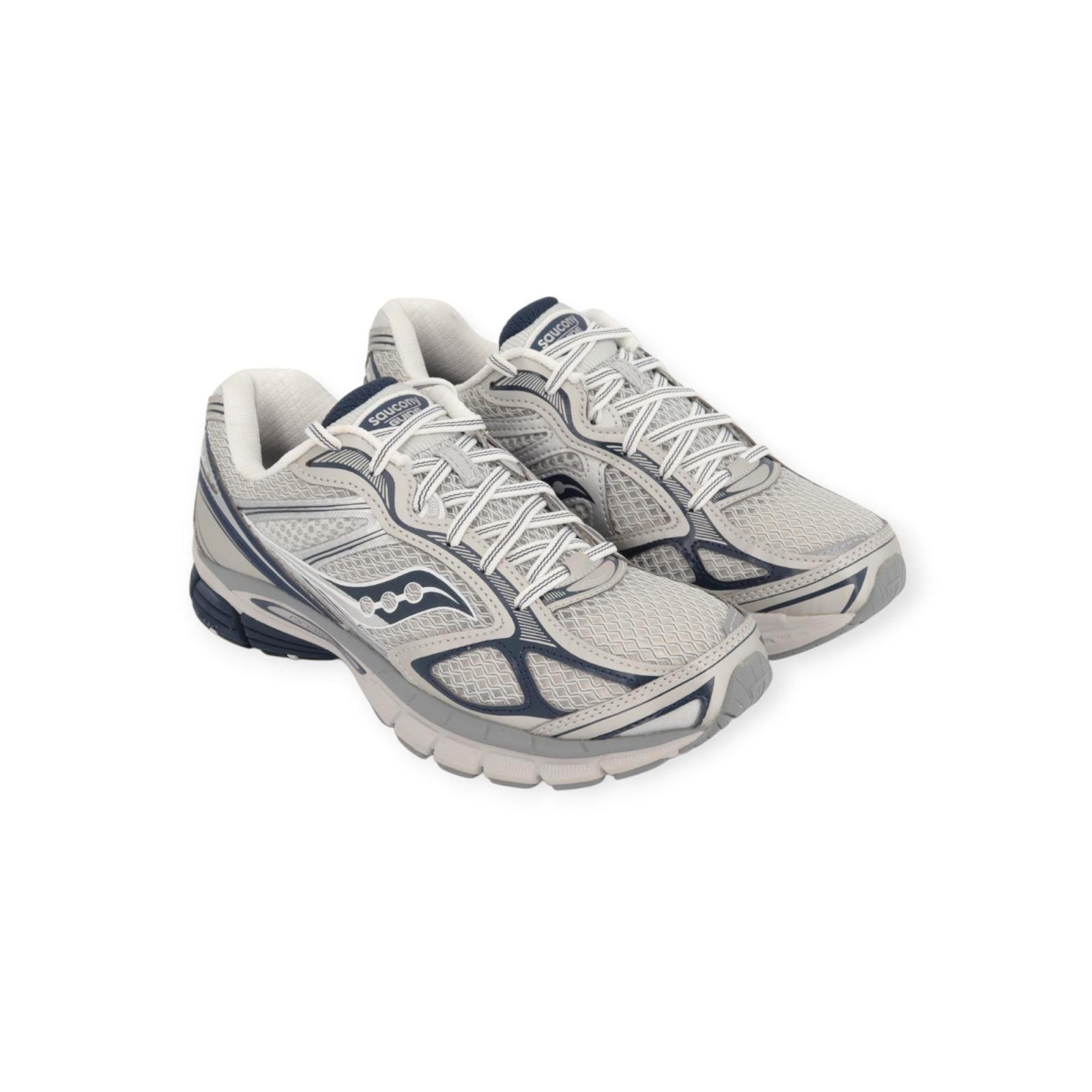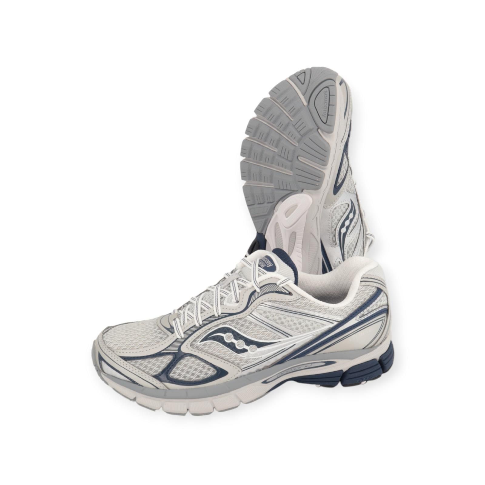 Sneaker Progrid Guide 7 van Saucony voor heren. Deze klassieker is volledig geupdate met grijze mesh en blauw leer. Met zilver reflecterende details. Voelt super licht aan en biedt nog meer bescherming en comfort. De binnenzool is uitneembaar.