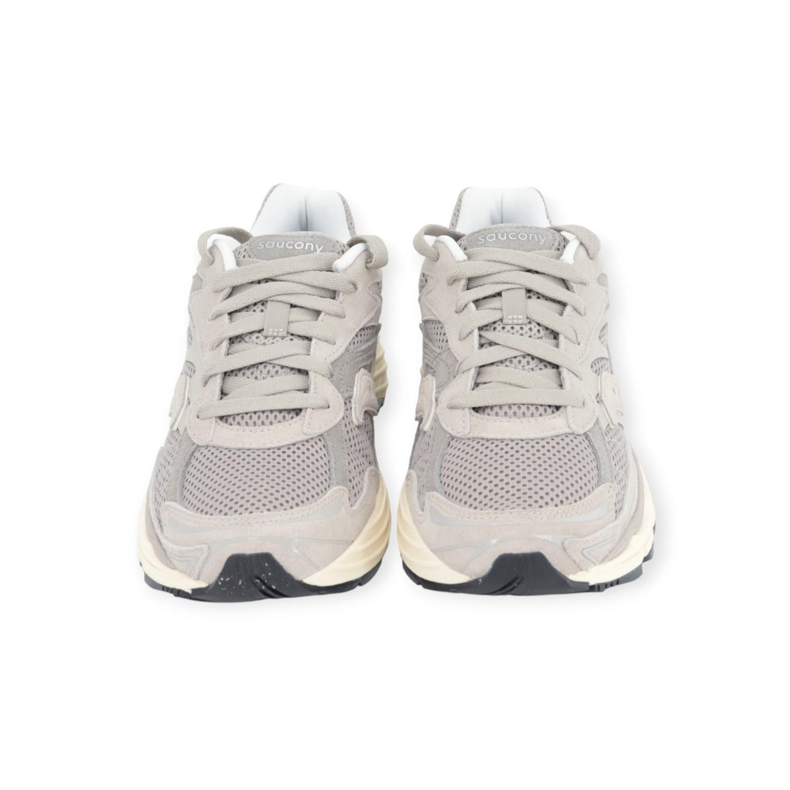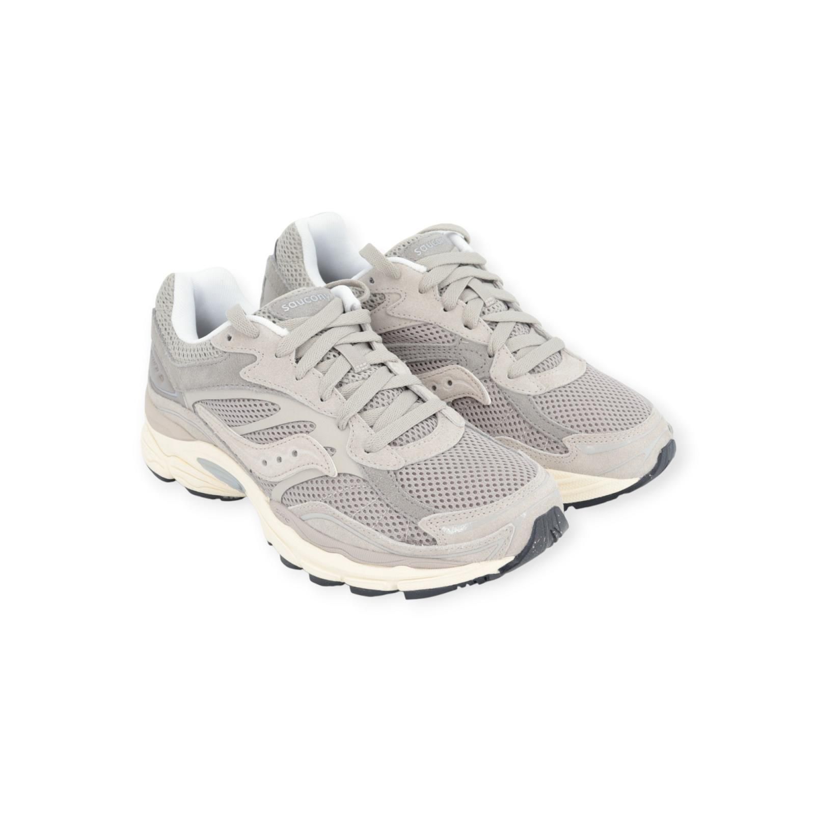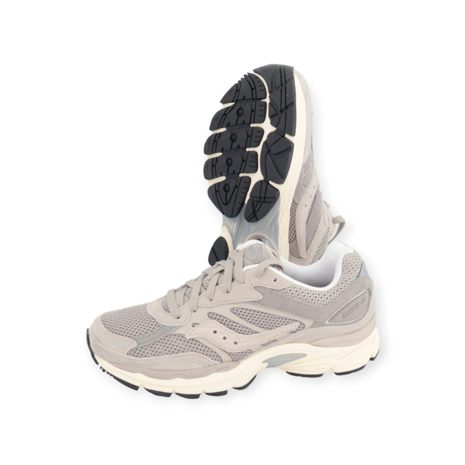 Sneaker Progrid Omni 9 van Saucony voor heren. Deze klassieker is volledig geupdatet met grijze verfijne mesh, leren en synthetische details. Voelt super licht aan. De binnenzool is uitneembaar.