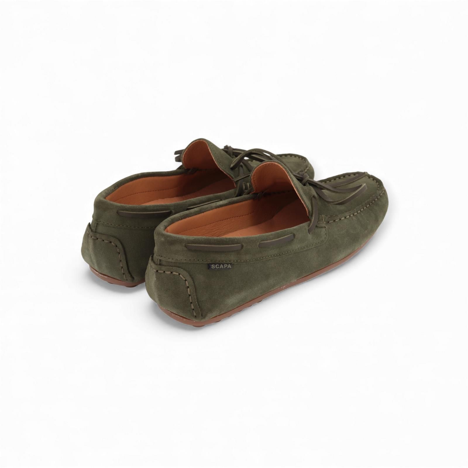Mocassin Osorio van Scapa in groen suède voor heren. Deze mocassins zijn de ideale zomerse schoen. Voelen zeer licht aan de voet. En hebben een uitneembare binnenzool.