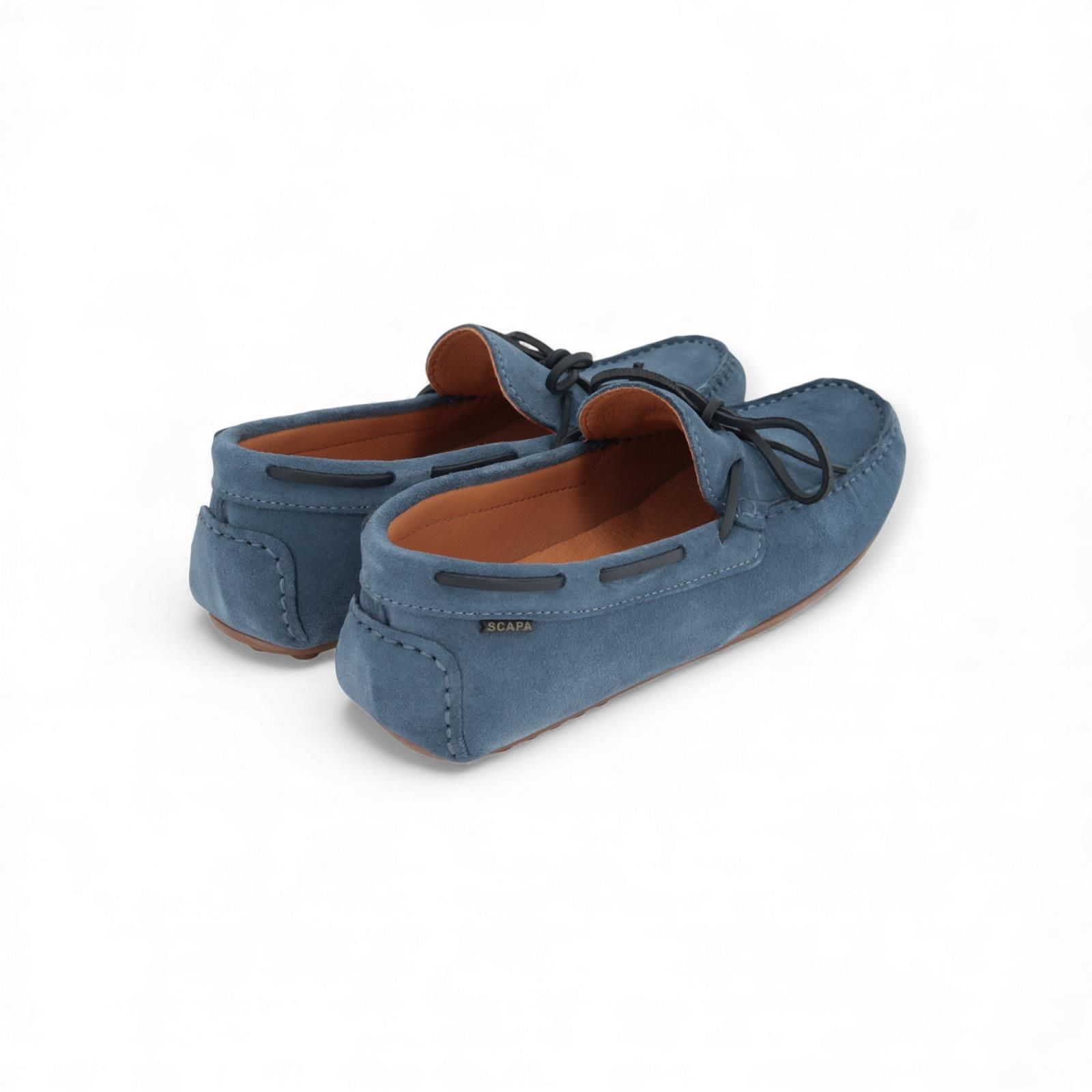 Mocassin Osorio van Scapa in jeans suède voor heren. Deze mocassins zijn de ideale zomerse schoen. Voelen zeer licht aan de voet. En hebben een uitneembare binnenzool.