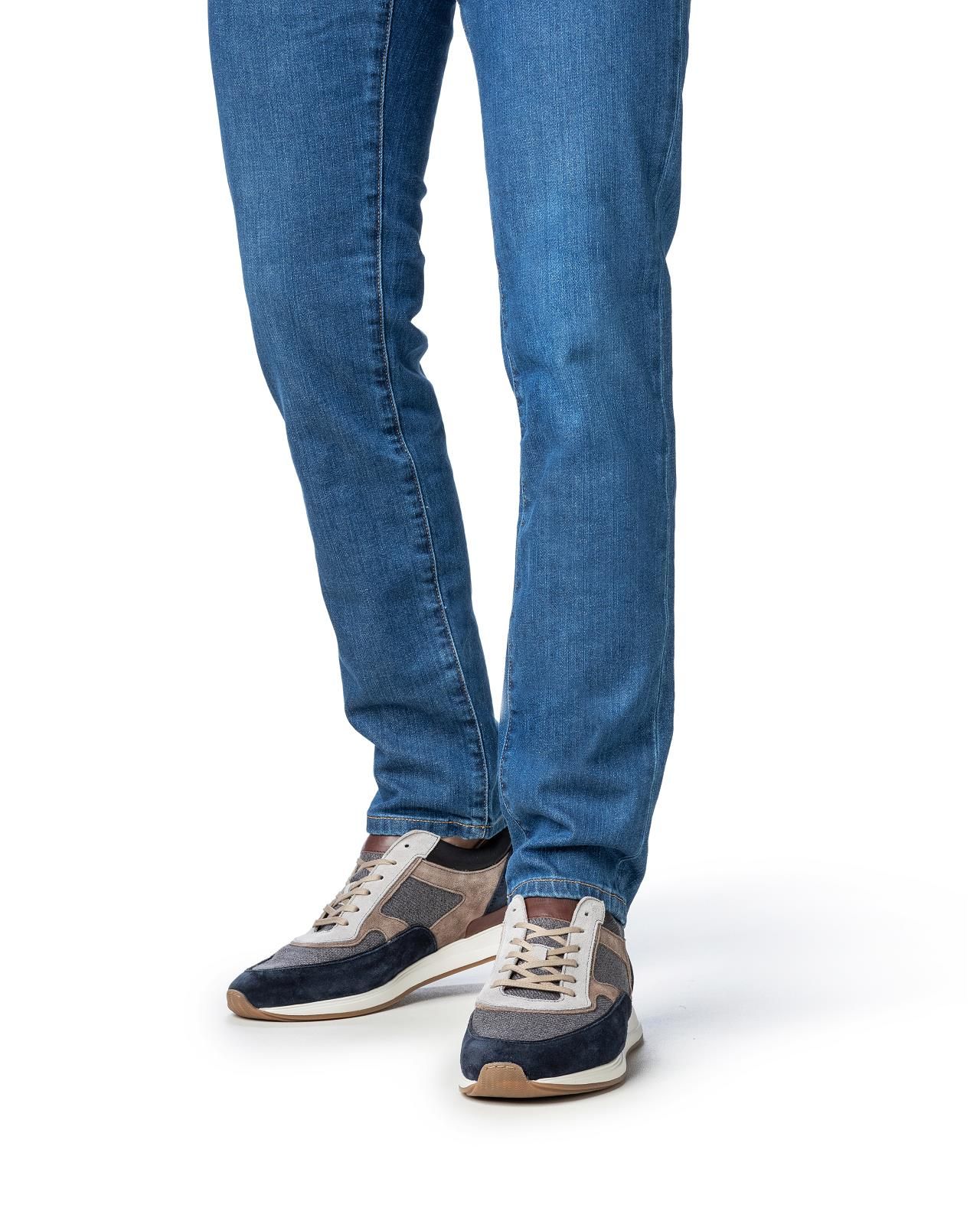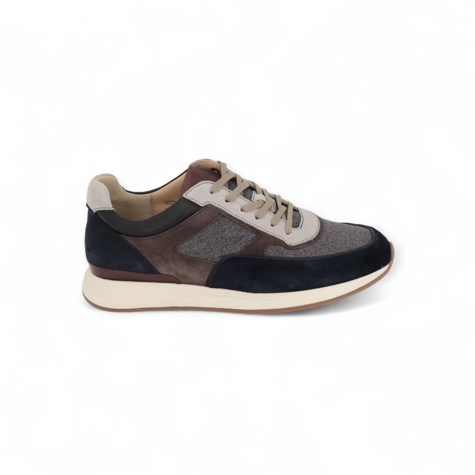 Runner Libra 05.07 van Van Bommel voor heren. Deze runner is uitgevoerd in blauw en beige suède met jeansblauwe textiel. Is op een slankogende leest gezet met een lichtgewicht rubberzool. De hielflap is in off wit en op de hiel is een bruin leren hielstuk toegevoegd. De binnenzool is uitneembaar.