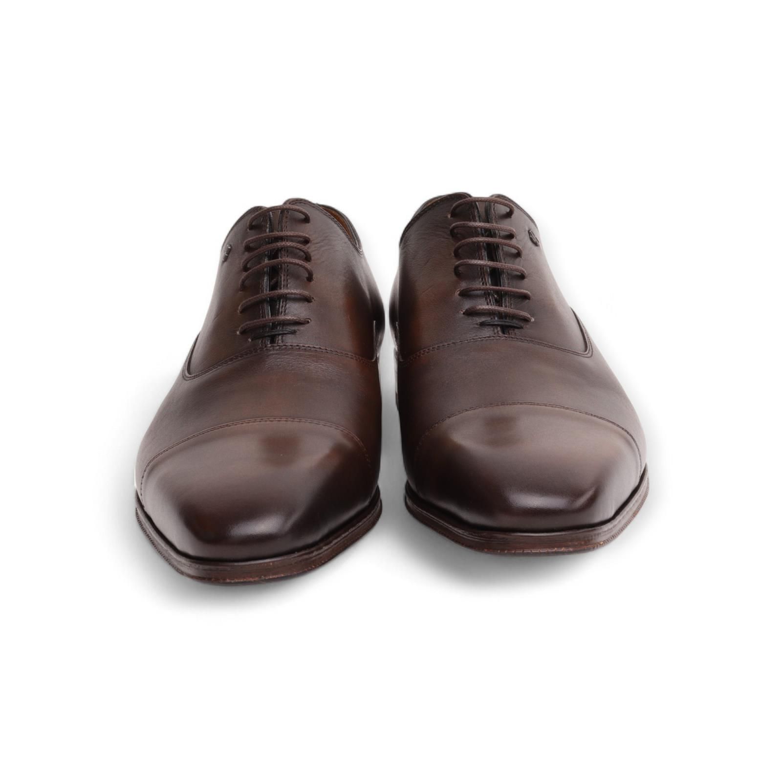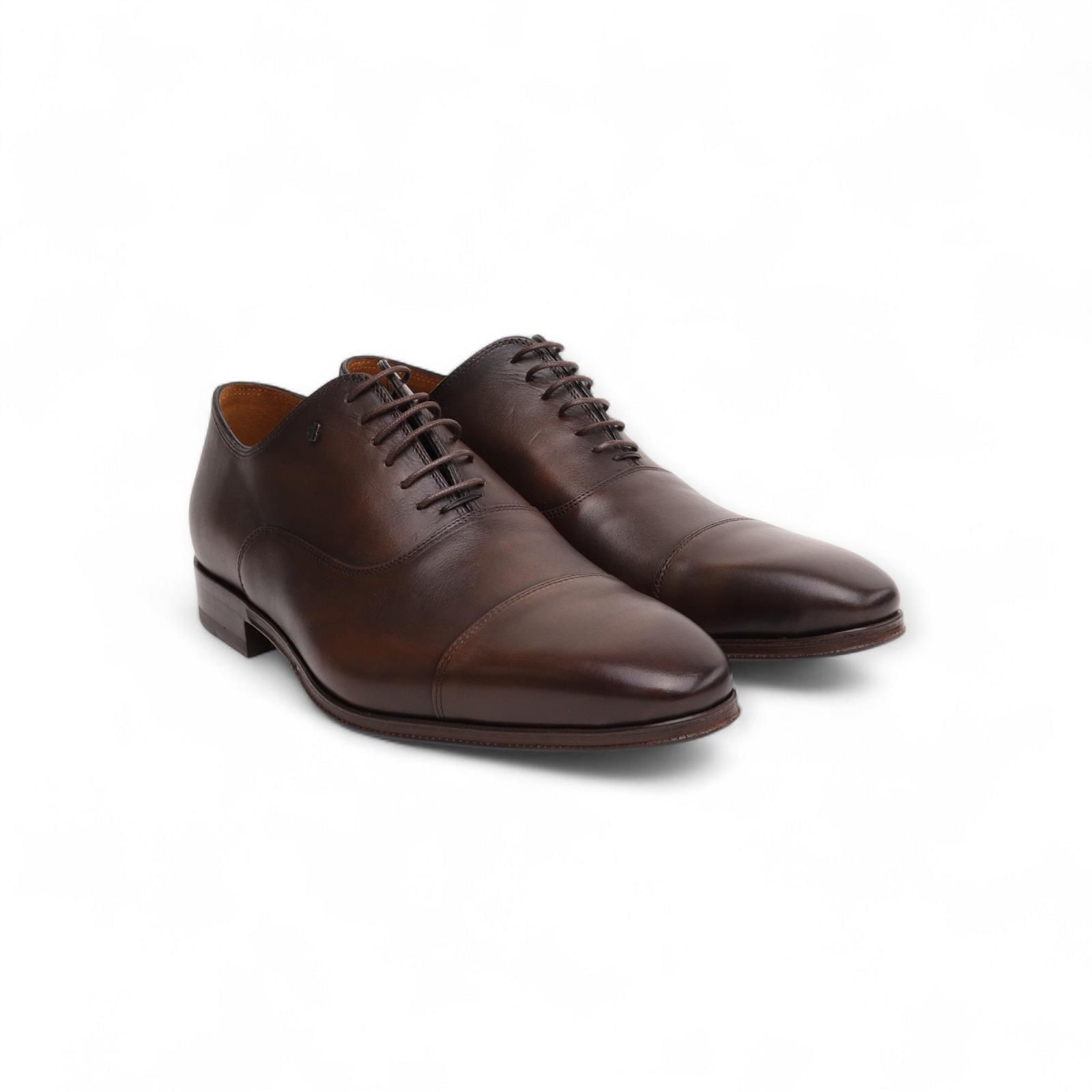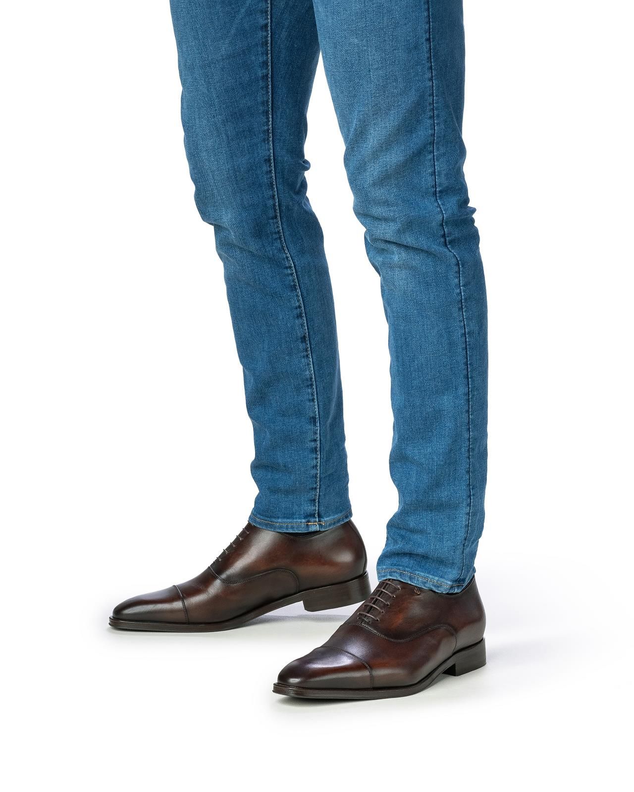 Deze heren schoen Raffa 02.01 van Van Bommel met rechte neuskap hoort bij de geklede collectie. De veterschoen heeft een zool met een fijn antislip profiel. Het deel dat tijdens het lopen het meest belast wordt is van slijtvast rubber. Om te voorkomen dat u met uw hak in de zoom van uw broek blijft steken is het puntje van de hak dat aan de binnenzijde zit afgeschuurd. Aan de zijkant van de schoen is bij het bovenste vetergaatje het iconische koperen VB'tje in het leer geslagen. De voering is volledig opgetrokken uit kwalitatief hoogwaardig kalfsleer. Het bovenwerk is gemaakt uit donkerbruin leer.