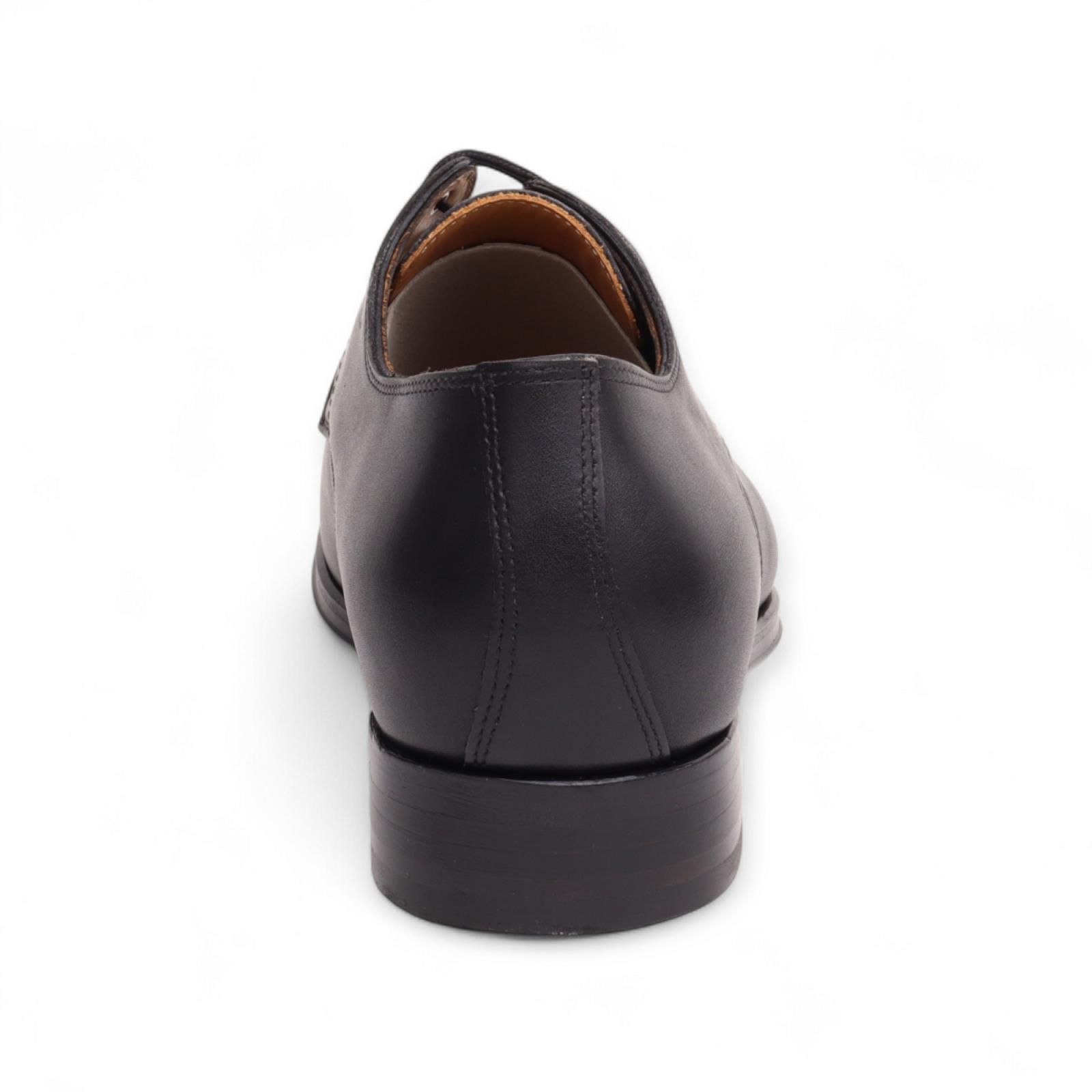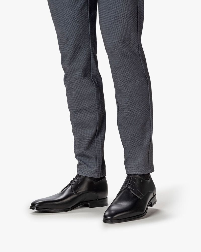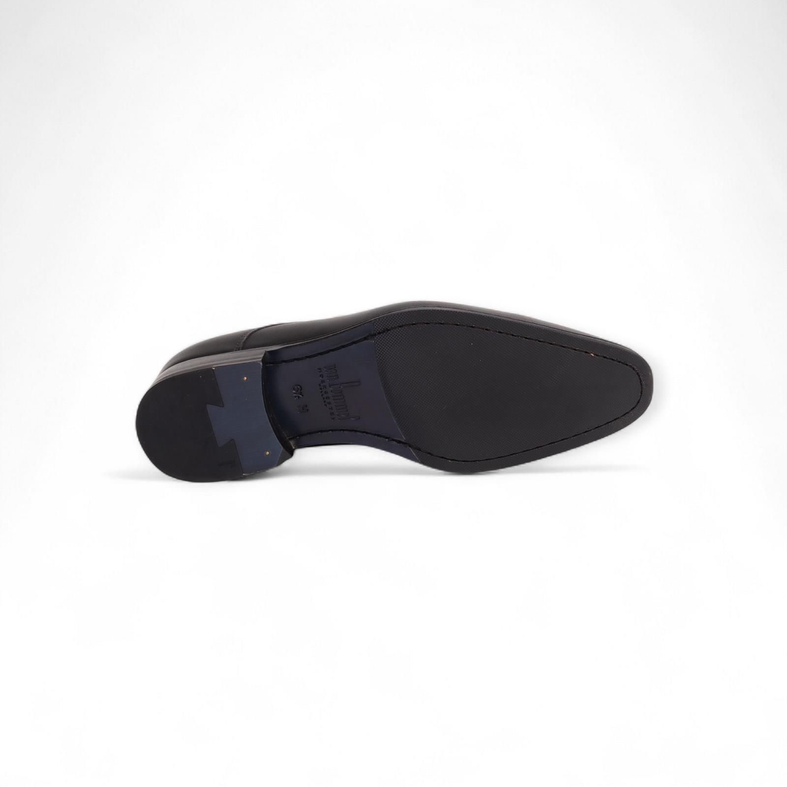 Deze herenschoen Raffa 03.01 van Van Bommel volledig effen hoort bij de geklede collectie. De veterschoen heeft een zool met een fijn antislip profiel. Het deel dat tijdens het lopen het meest belast wordt is van slijtvast rubber. Om te voorkomen dat u met uw hak in de zoom van uw broek blijft steken is het puntje van de hak dat aan de binnenzijde zit afgeschuurd. Aan de zijkant van de schoen is bij het bovenste vetergaatje het iconische koperen VB'tje in het leer geslagen. De voering is volledig opgetrokken uit kwalitatief hoogwaardig kalfsleer. Deze schoen is uitgevoerd in mooi klassiek, zwart leder.