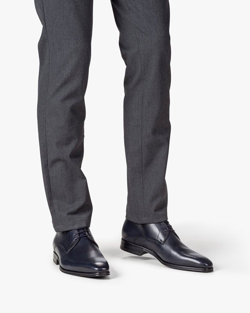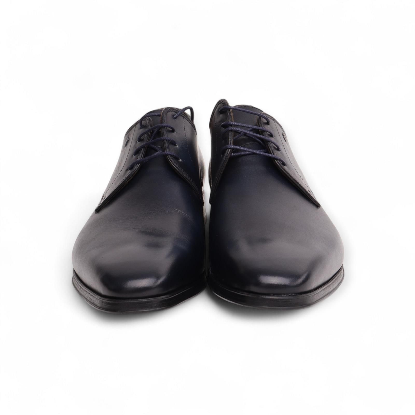 Deze herenschoen Raffa 03.06 van Van Bommel volledig effen hoort bij de geklede collectie. De veterschoen heeft een zool met een fijn antislip profiel. Het deel dat tijdens het lopen het meest belast wordt is van slijtvast rubber. Om te voorkomen dat u met uw hak in de zoom van uw broek blijft steken is het puntje van de hak dat aan de binnenzijde zit afgeschuurd. Aan de zijkant van de schoen is bij het bovenste vetergaatje het iconische koperen VB'tje in het leer geslagen. De voering is volledig opgetrokken uit kwalitatief hoogwaardig kalfsleer. Deze schoen is uitgevoerd in mooi klassiek, donker blauw leder.