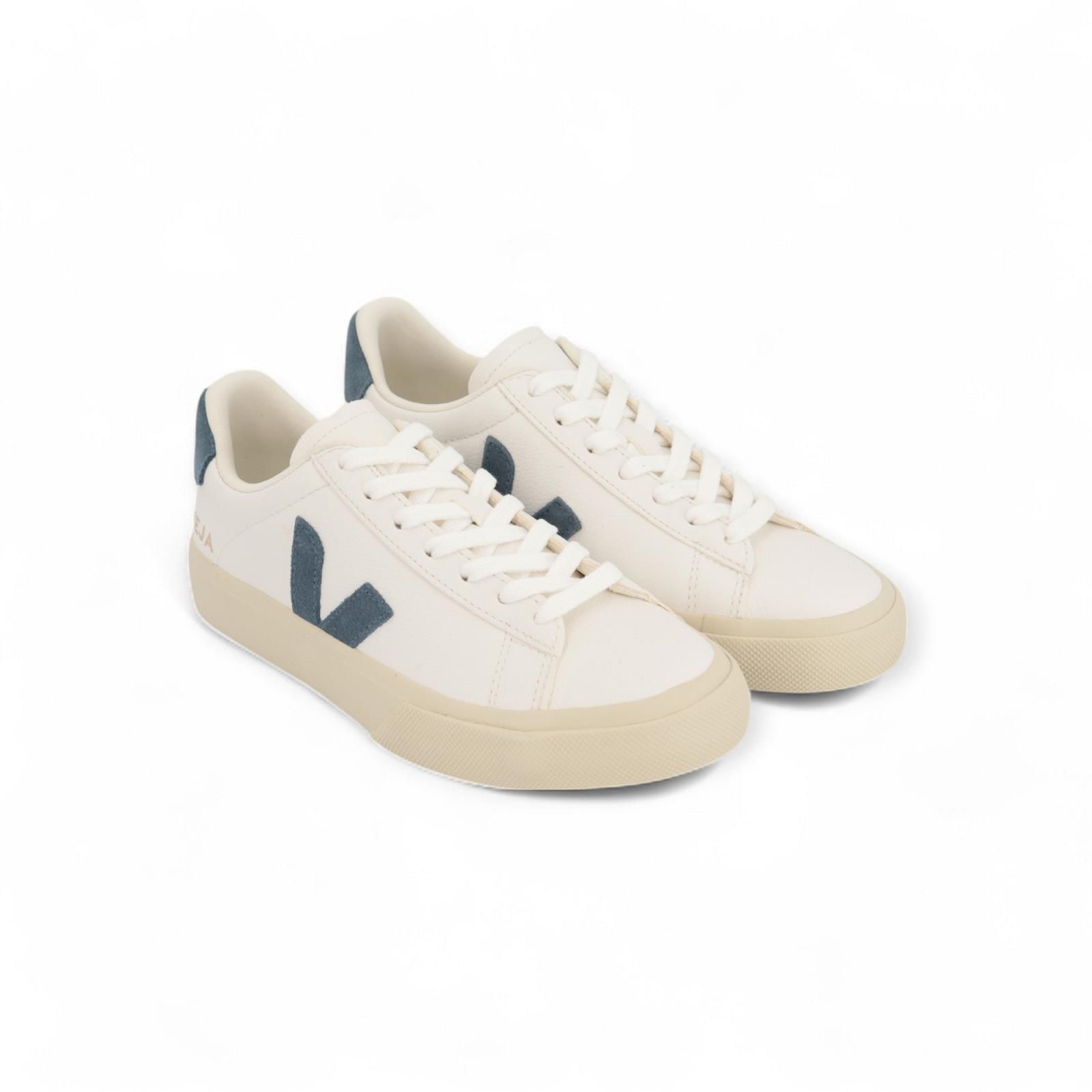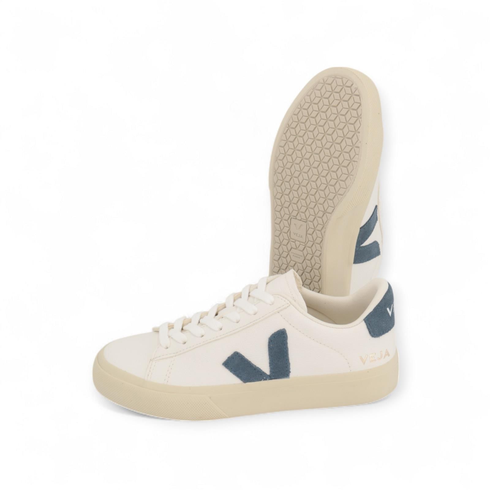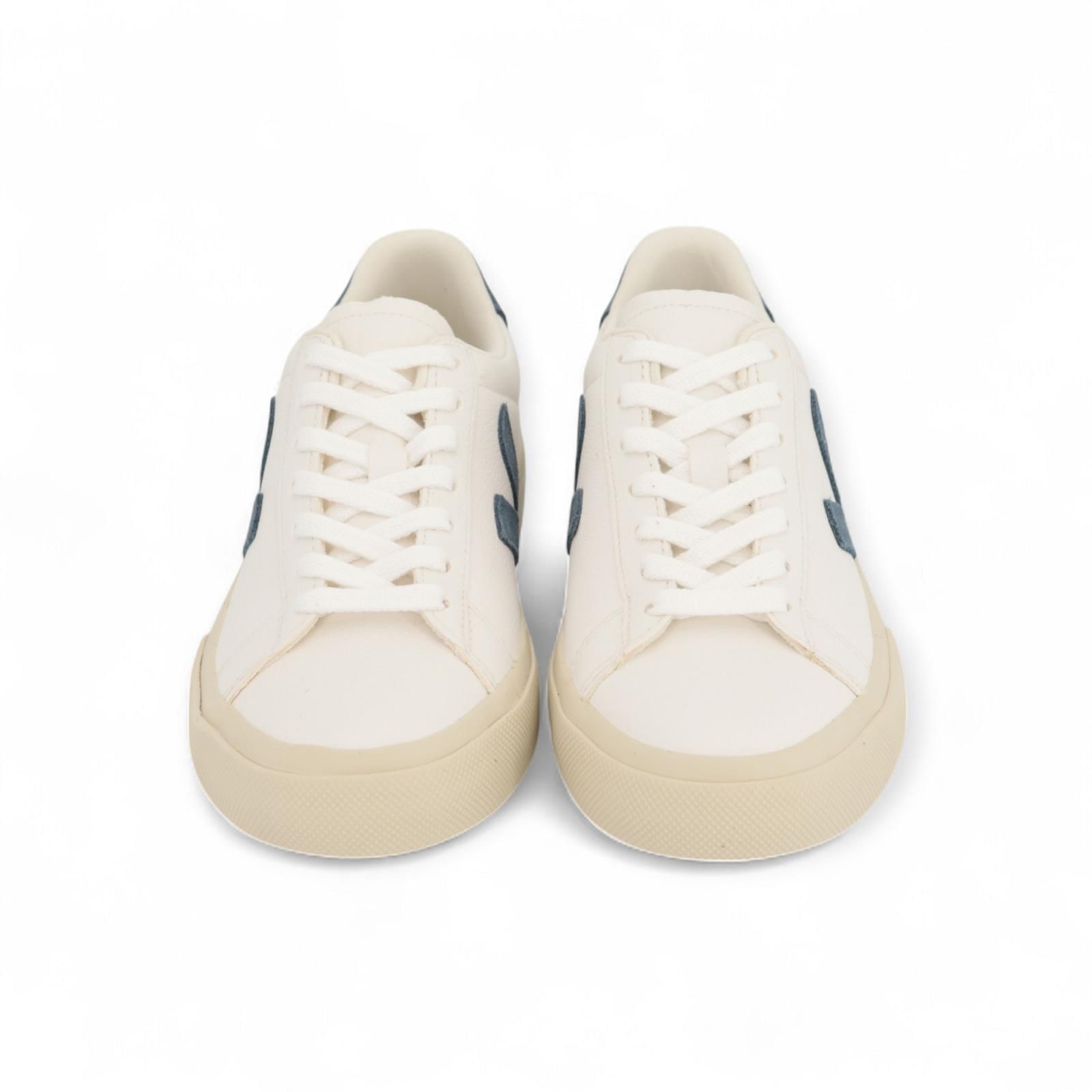 Sneaker CAMPO van Veja voor dames en heren. Deze toffe sneaker is in wit leer. Afgewerkt met een licht blauwe hielflap en de bekende V aan de zijkanten. Is zeer soepel en de binnenzool is uitneembaar. Dit model is unisex.