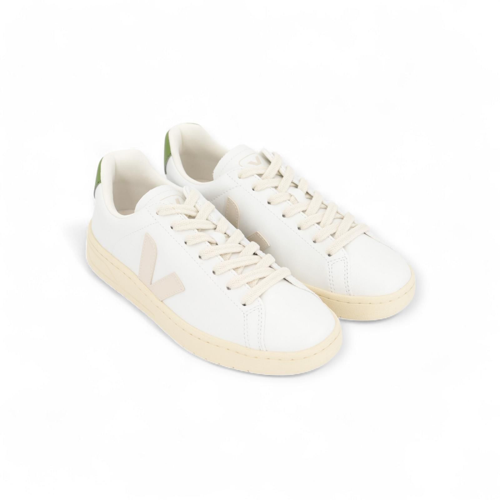 Deze wit met groen Urca sneaker van Veja met de bekende V in beige is 100% ecologisch! Ze hebben een vaste zool die minder plooibaar zijn dan de Esplars. Dit model heeft een uitneembare zool. En is unisex voor dames en heren.