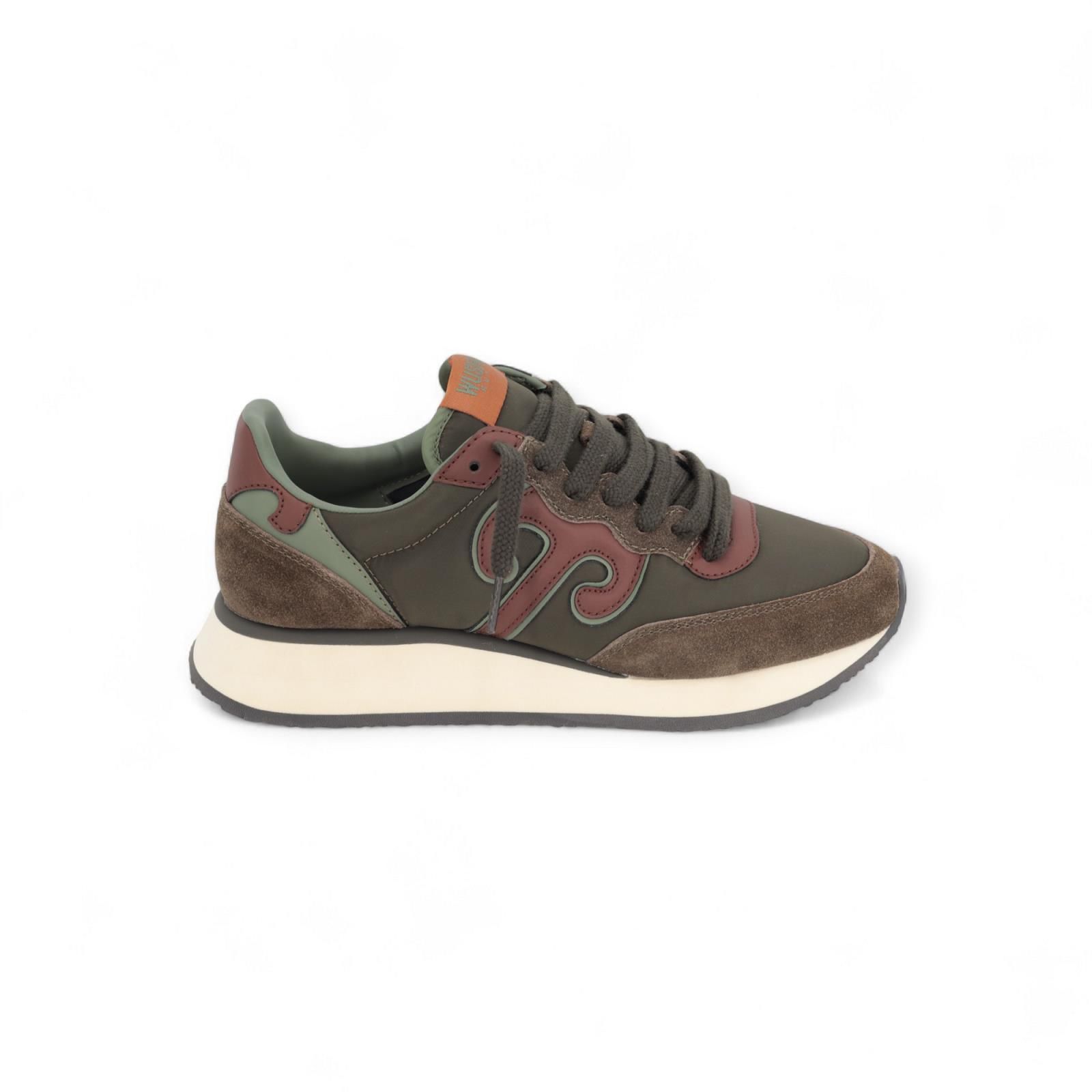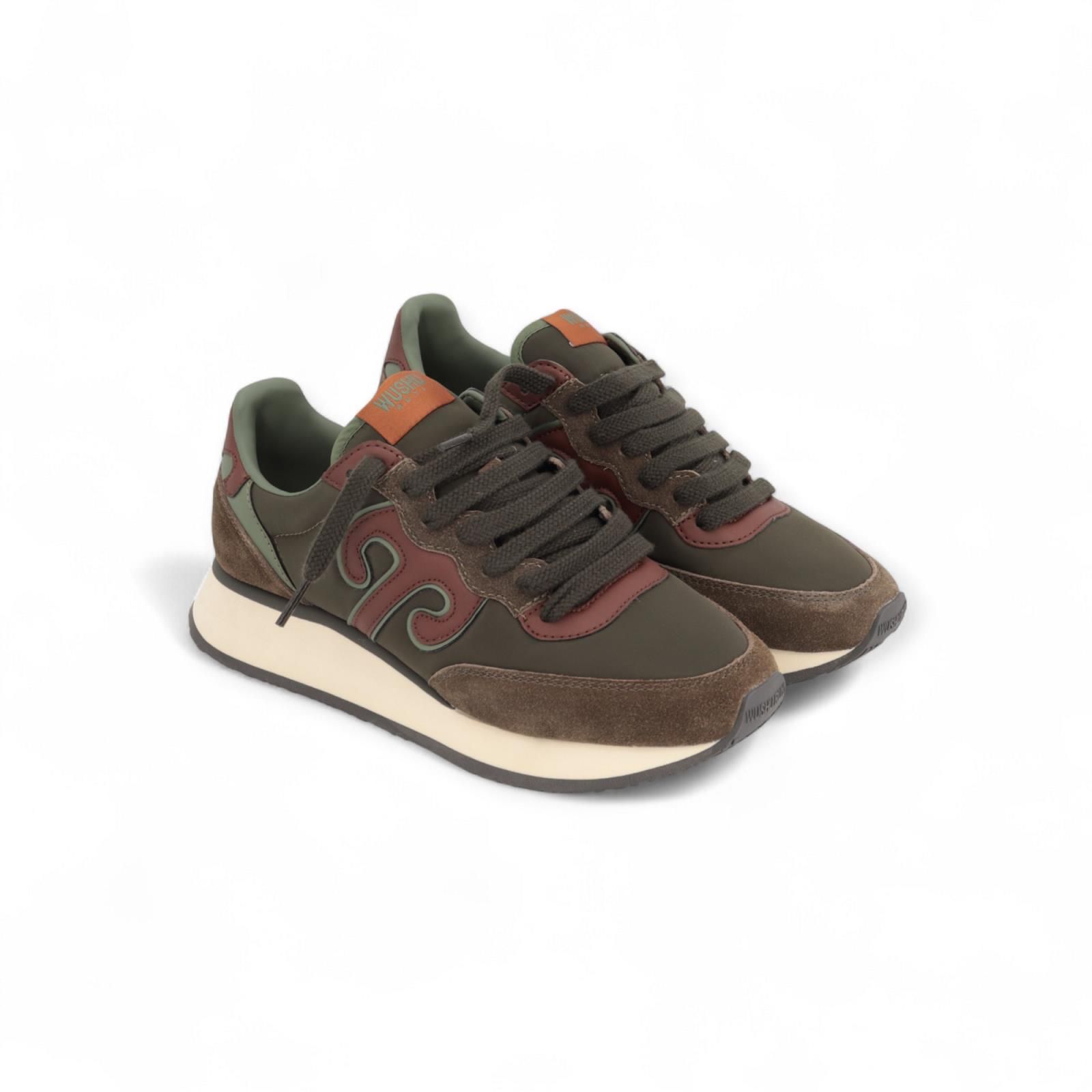 Sneaker Art Master van Wushu Ruyi voor heren. Deze runner is uitgevoerd in groen en bruin nylon met lederstukken. Aan de zijkant van de schoen vind je hun kenmerkende RUYI teken: het Chinees symbool van geluk. Is op zool van 4cm en heeft een uitneembare binnenzool. Extra toegevoegd: muntgroene veter.