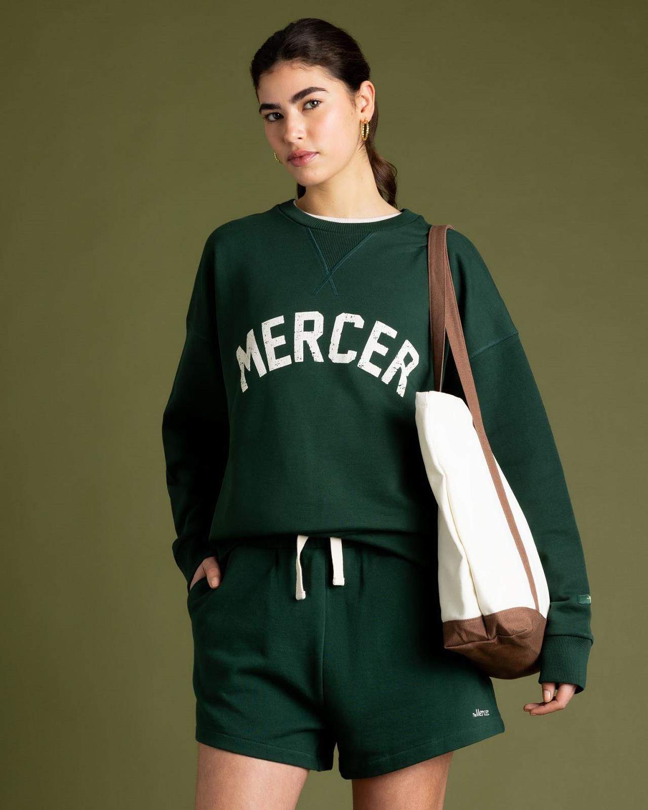 Sweater Mercer Logo Sweat van Mercer voor dames en heren. Deze sweater in groen is gemaakt van premium, zwaar katoen. Afgewerkt met Mercer logo in zacht wit vintage effect. Draag hem met bijpassende t-shirt. Of mix & match.