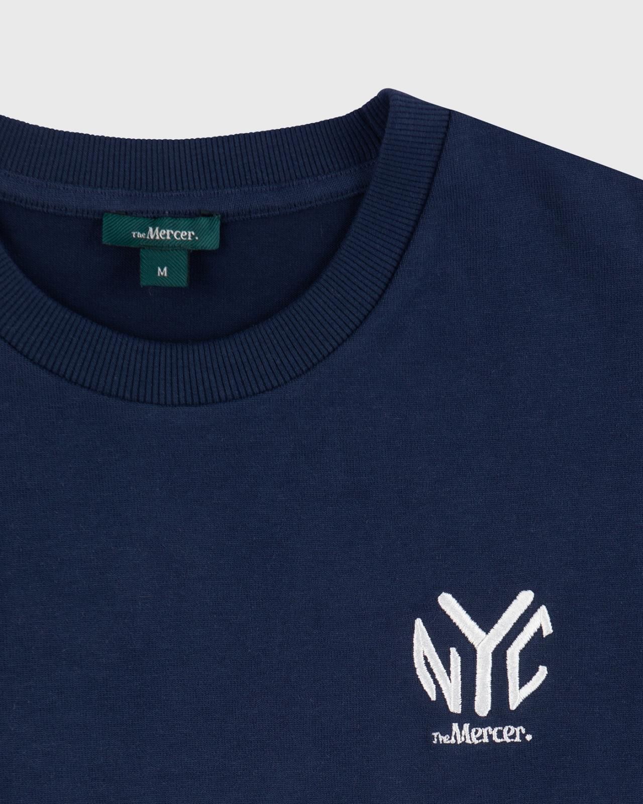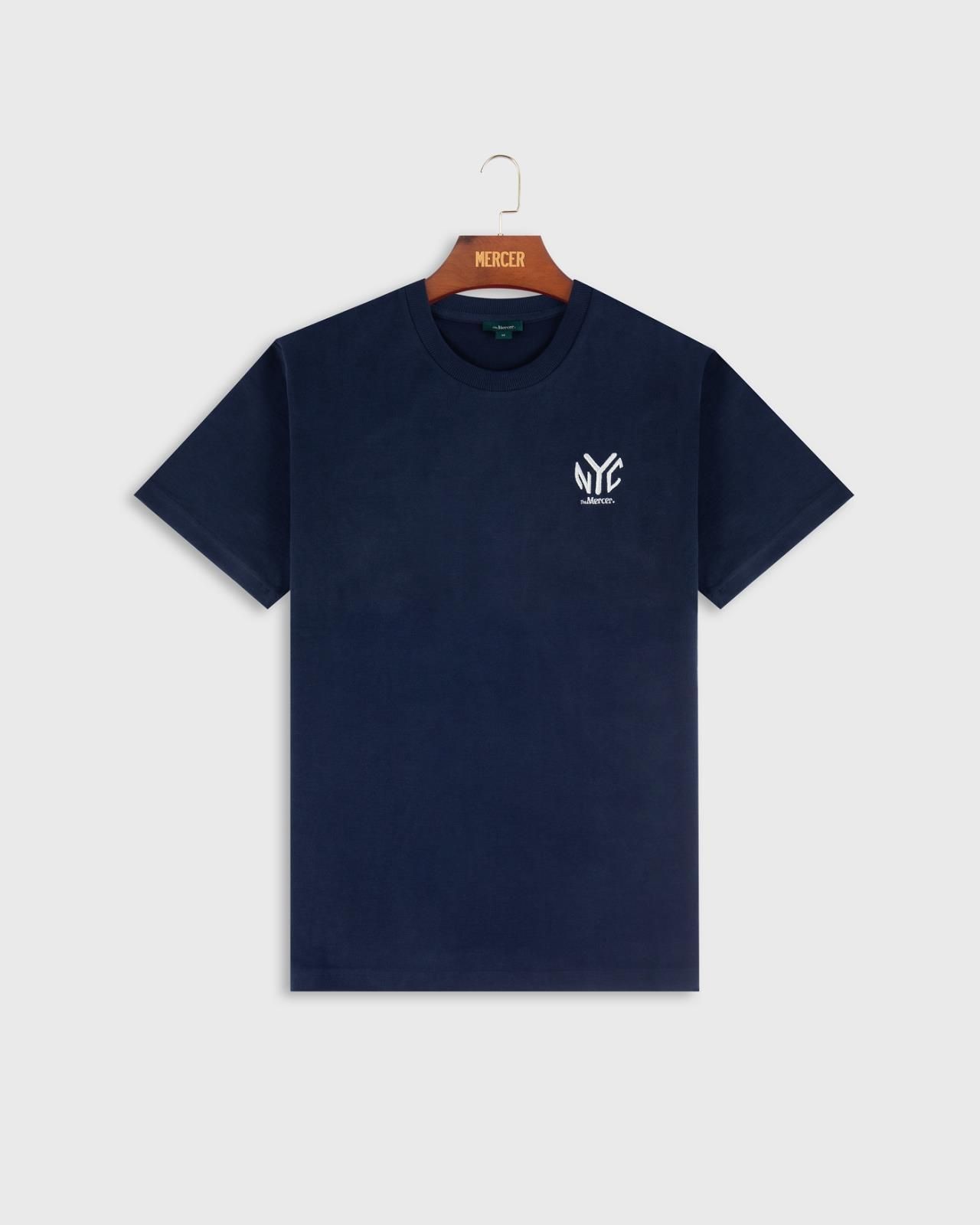 T-shirt The Subway Tee van Mercer voor dames en heren. Deze T-shirt in blauw is gemaakt van 100% biologisch katoen. Met het the Mercer NYC logo op de borst in wit. Deze t-shirt is unisex. Combineer deze t-shirt met bijpassende sweater.