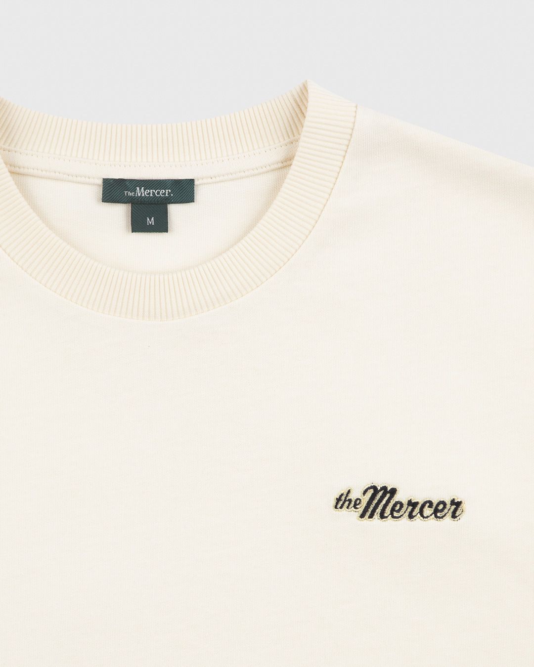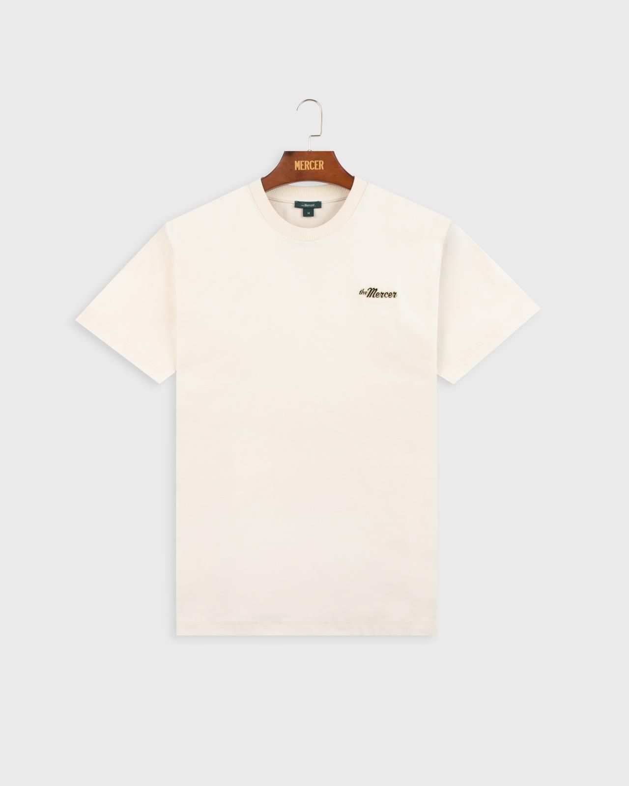 T-Shirt The Mercer Heavy Tee van Mercer voor dames en heren. Deze t-shirt in offwit is gemaakt voor wie premium kwaliteit en comfort waardeert. Geïnspireerd door Amerikaanse sportkleding, een klassiek model voor hem en haar. Gemaakt van premium biologisch katoen. Afgewerkt met the mercer- logo in blauw op de borst. Combineer deze t-shirt met bijpassende sweater.