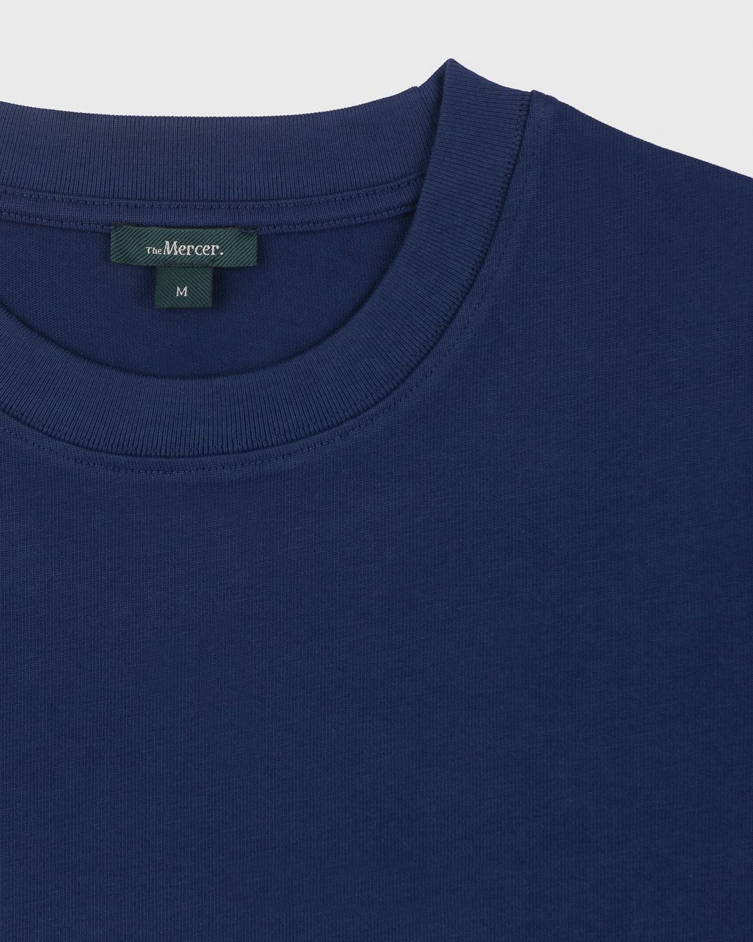 T-Shirt The Mercer Logo Tee van Mercer voor dames. Deze T-shirt in blauw is gemaakt van 100% biologisch katoen. Met het the Mercer-logo onderaan aan de zijkant in wit. Draag hem met bijpassende broek, short en sweater. Of mix & match.