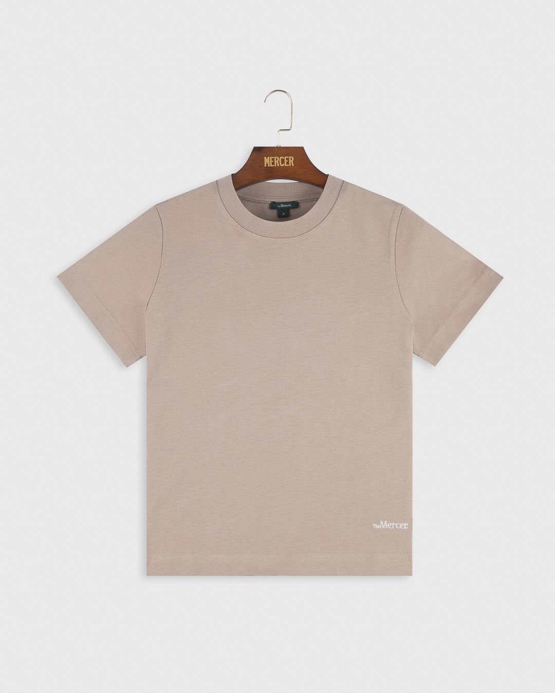T-Shirt The Mercer Logo Tee van Mercer voor dames. Deze T-shirt in zand is gemaakt van 100% biologisch katoen. Met het the Mercer-logo onderaan aan de zijkant in wit. Draag hem met bijpassende broek, short en sweater. Of mix & match.
